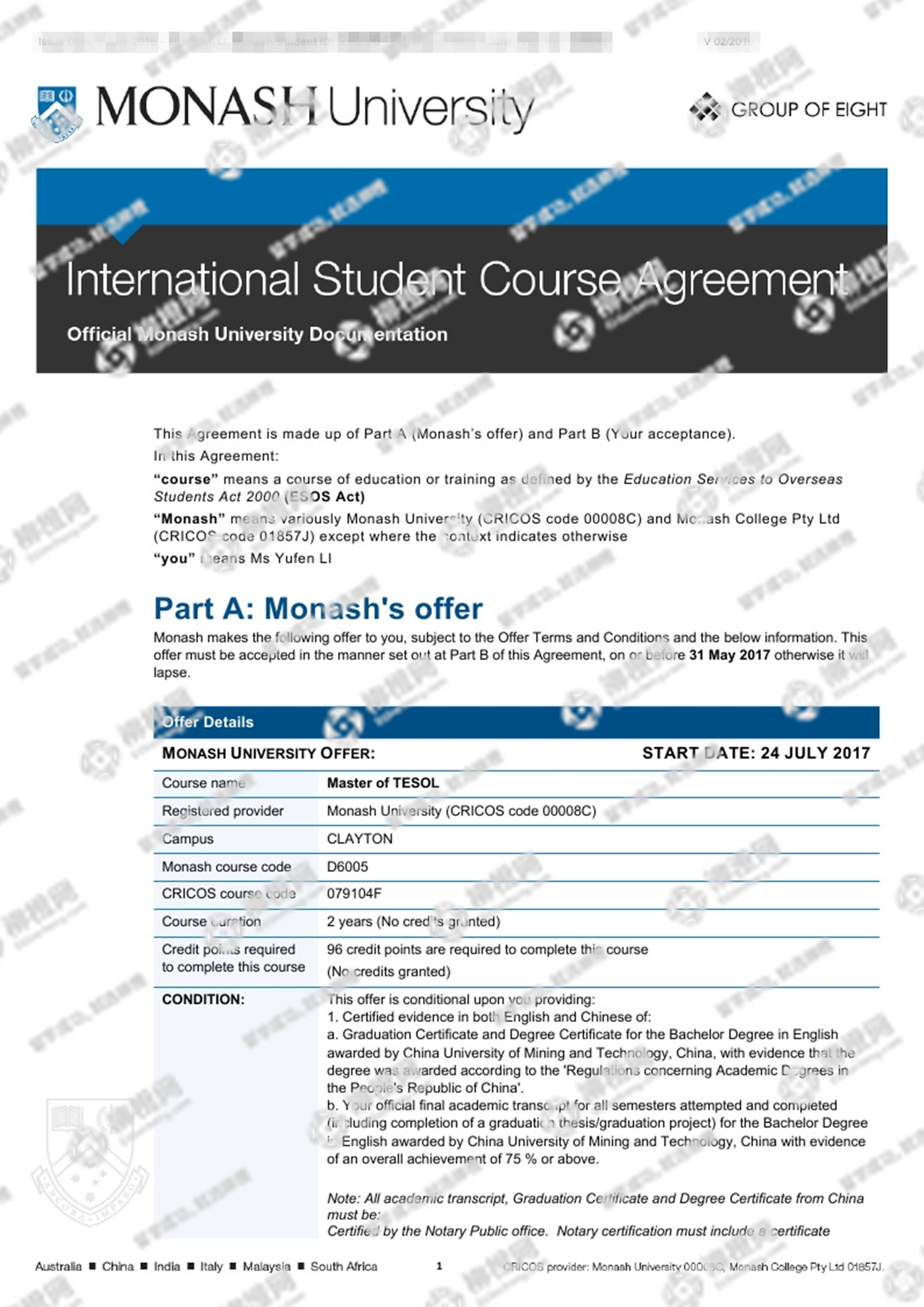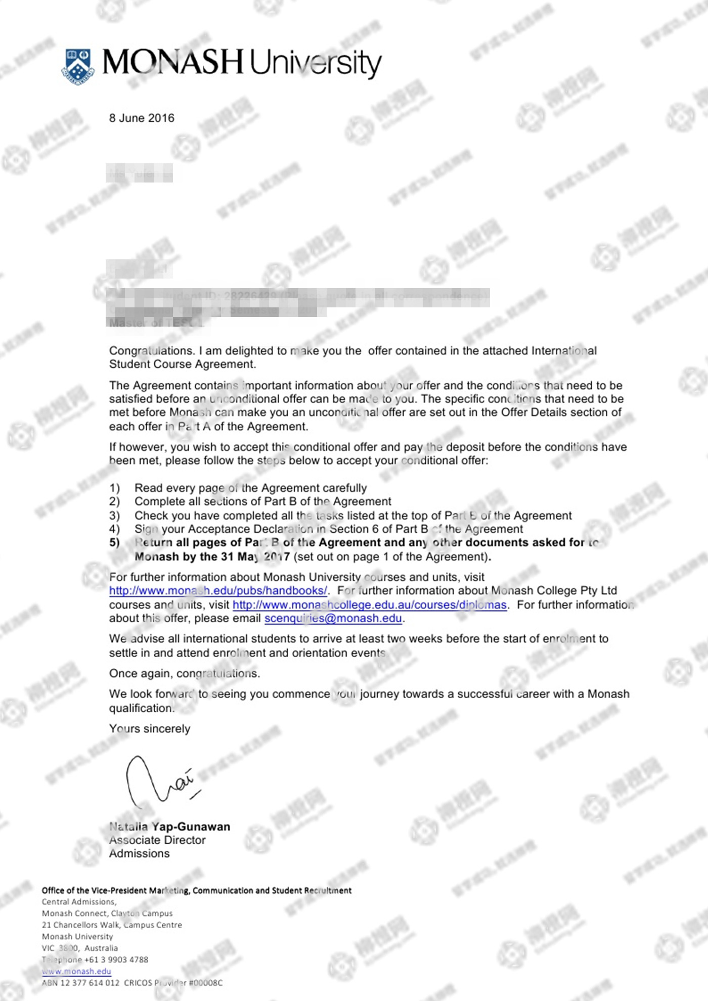 李同学,中国矿业大学徐海学院,GPA85,在上海柳橙网申请到了澳洲莫纳什大学offer。恭喜。