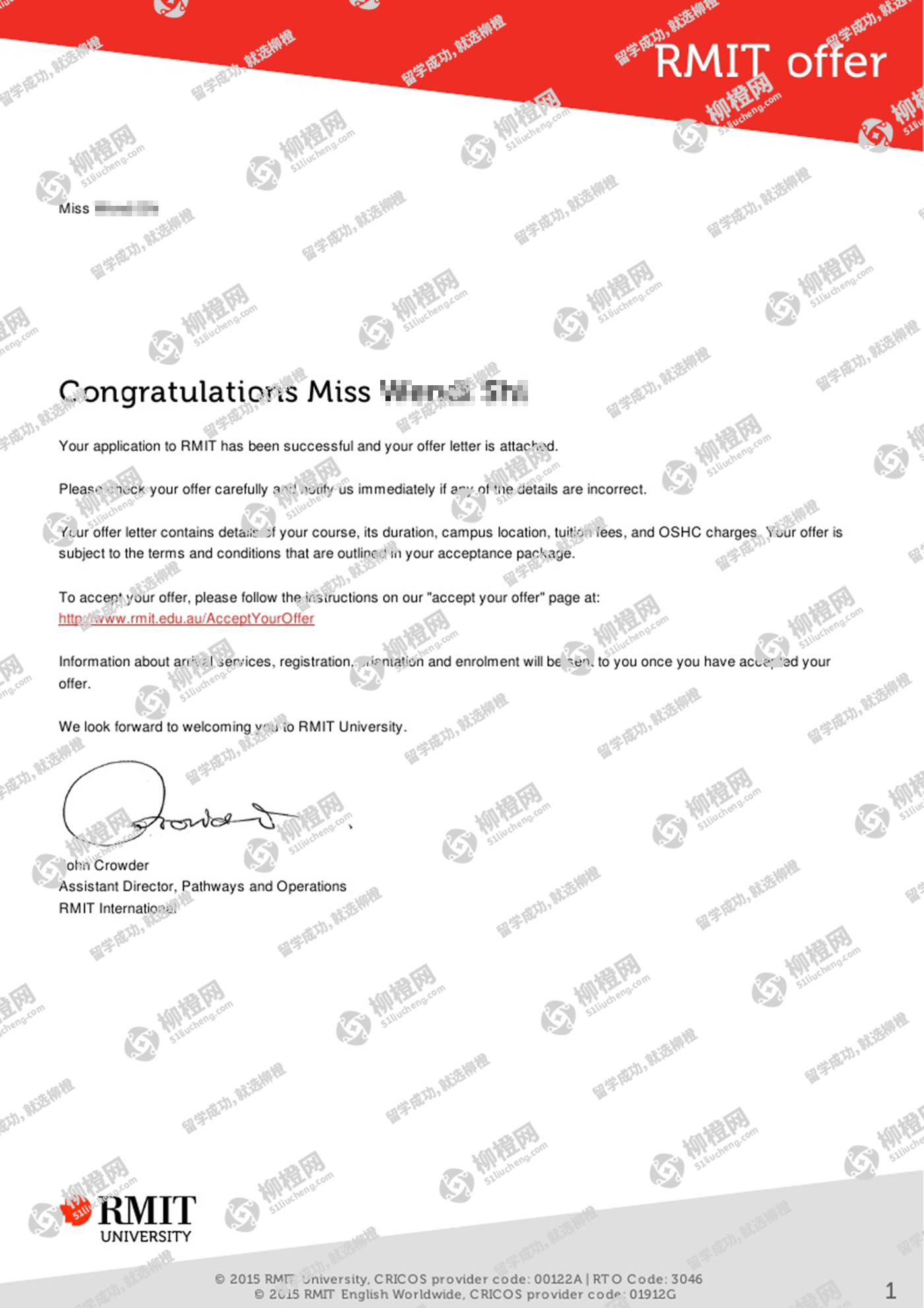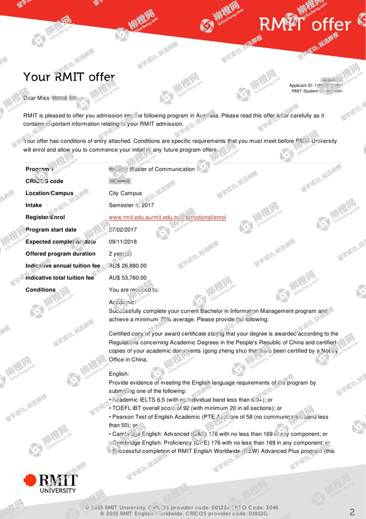 史同学,中央司法警官学院,GPA80,在上海柳橙网申请到了皇家墨尔本理工大学offer。恭喜。