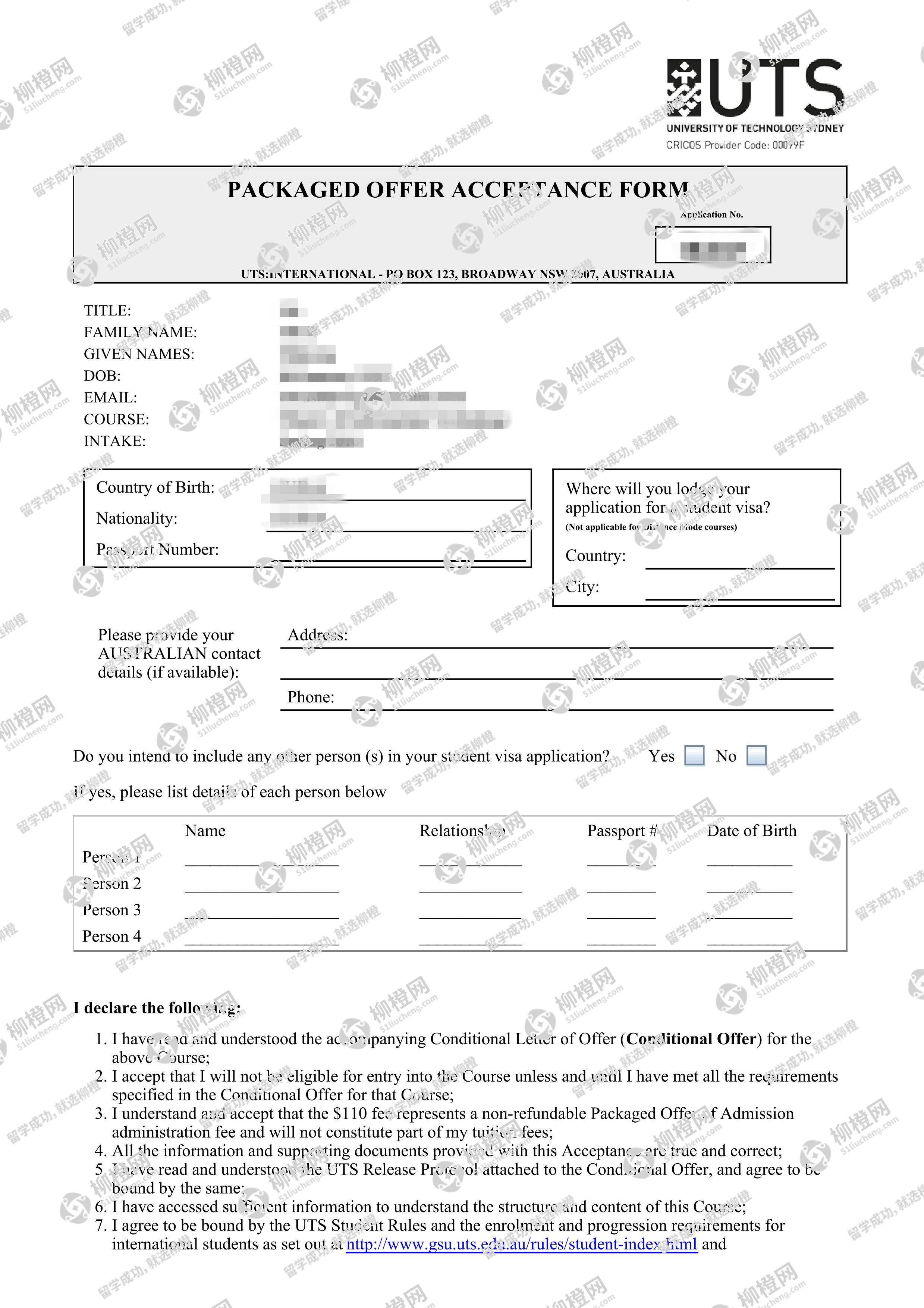 陈同学,龍華科技大學,GPA85分,在上海柳橙网申请到了悉尼科技大学offer,恭喜!