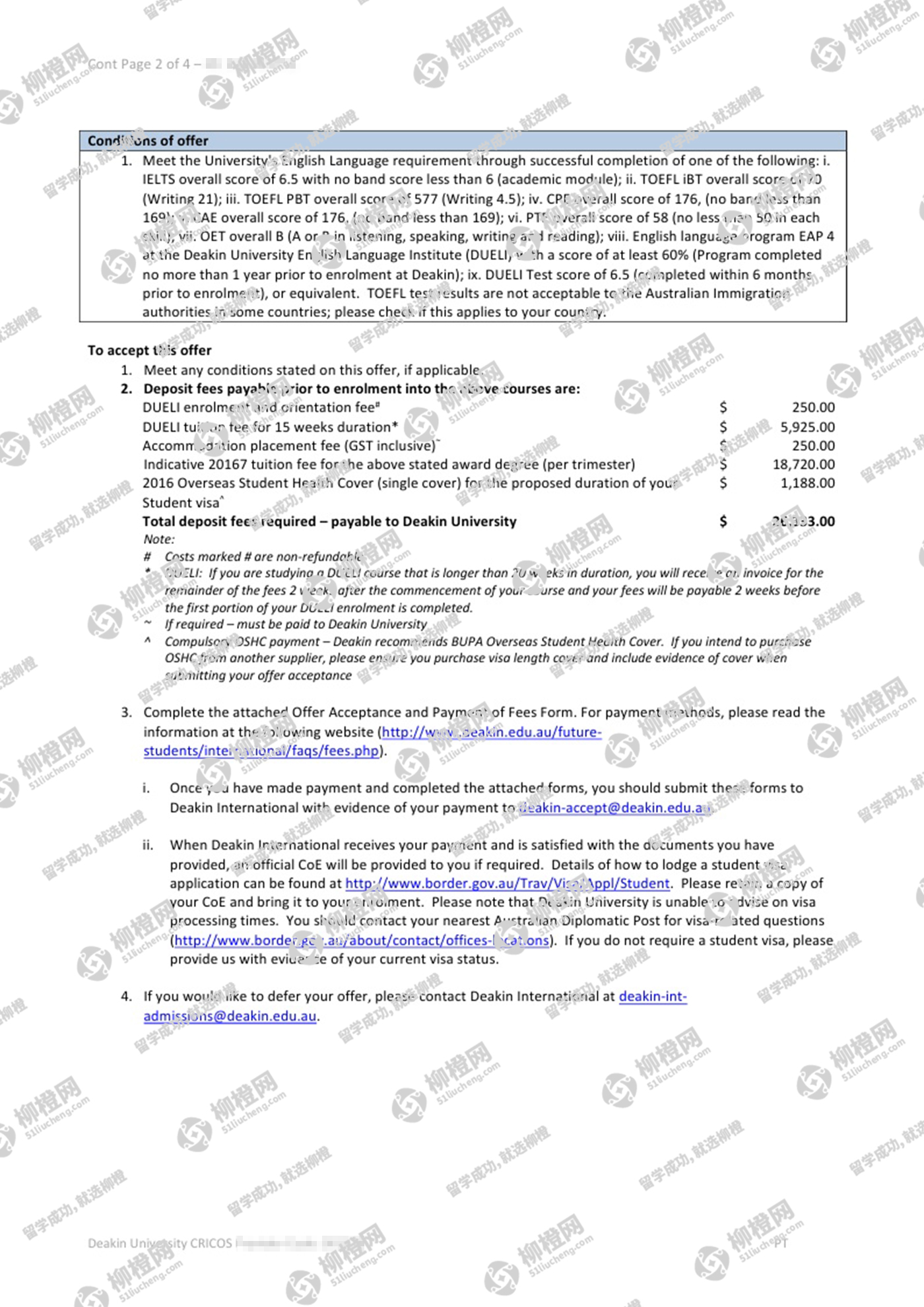 张同学,陕西科技大学镐京学院,GPA81分,在上海柳橙网申请到了迪肯大学语言offer,恭喜!