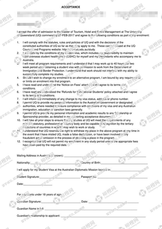 金同学,上海海事大学,GPA3.33,在上海柳橙网申请到了昆士兰大学offer,恭喜!