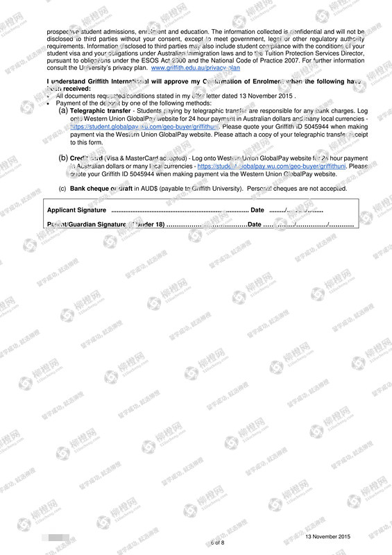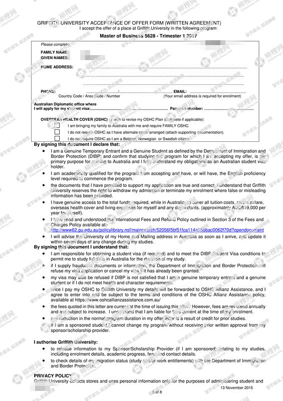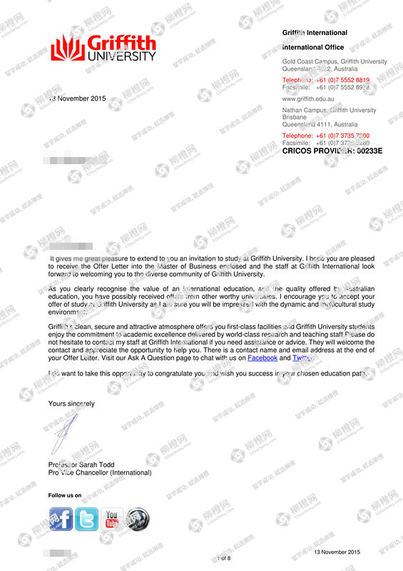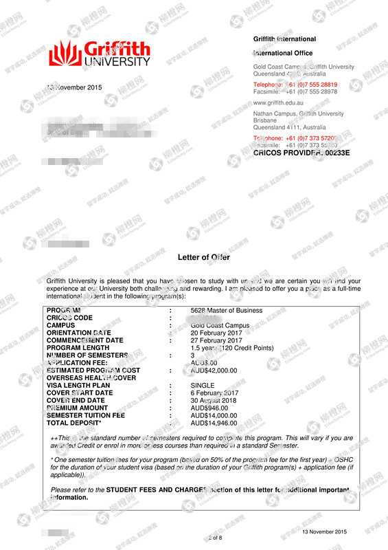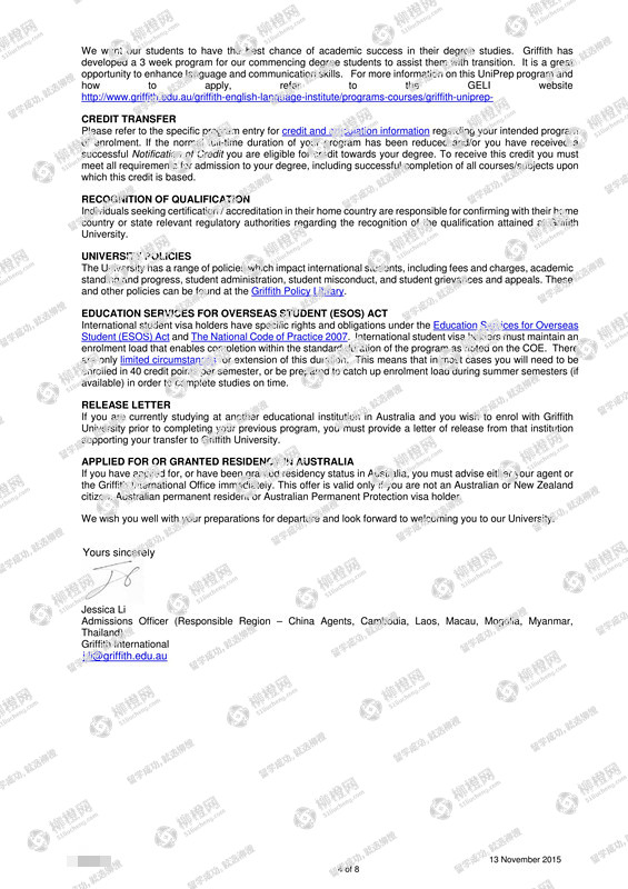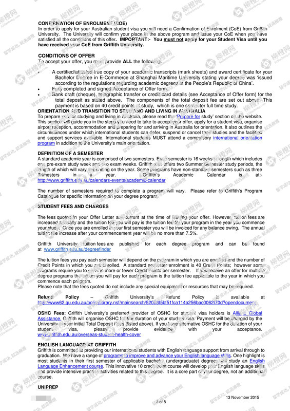 金同学,上海海事大学,GPA3.33,在上海柳橙网申请到了格里菲斯大学offer,恭喜!