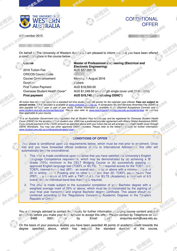 王同学,三峡大学,GPA83分,在上海柳橙网申请到了西澳大利亚大学offer,恭喜!