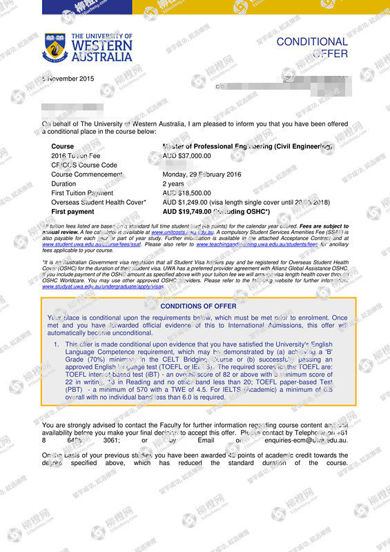 王同学,上海大学,GPA77分,在上海柳橙网申请到了西澳大利亚大学offer,恭喜!
