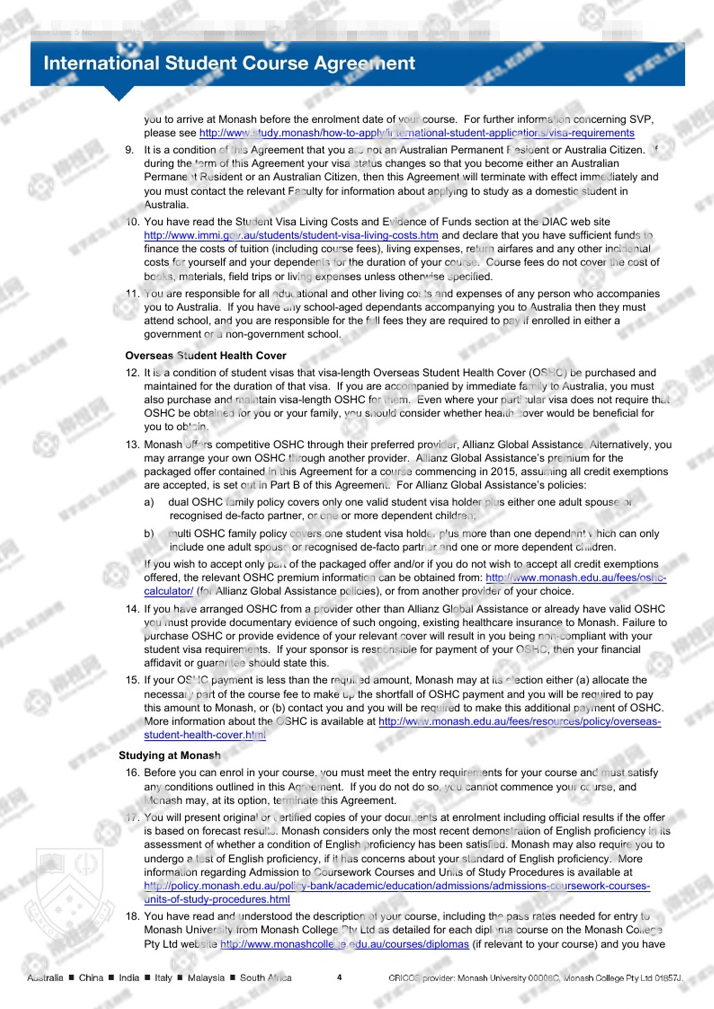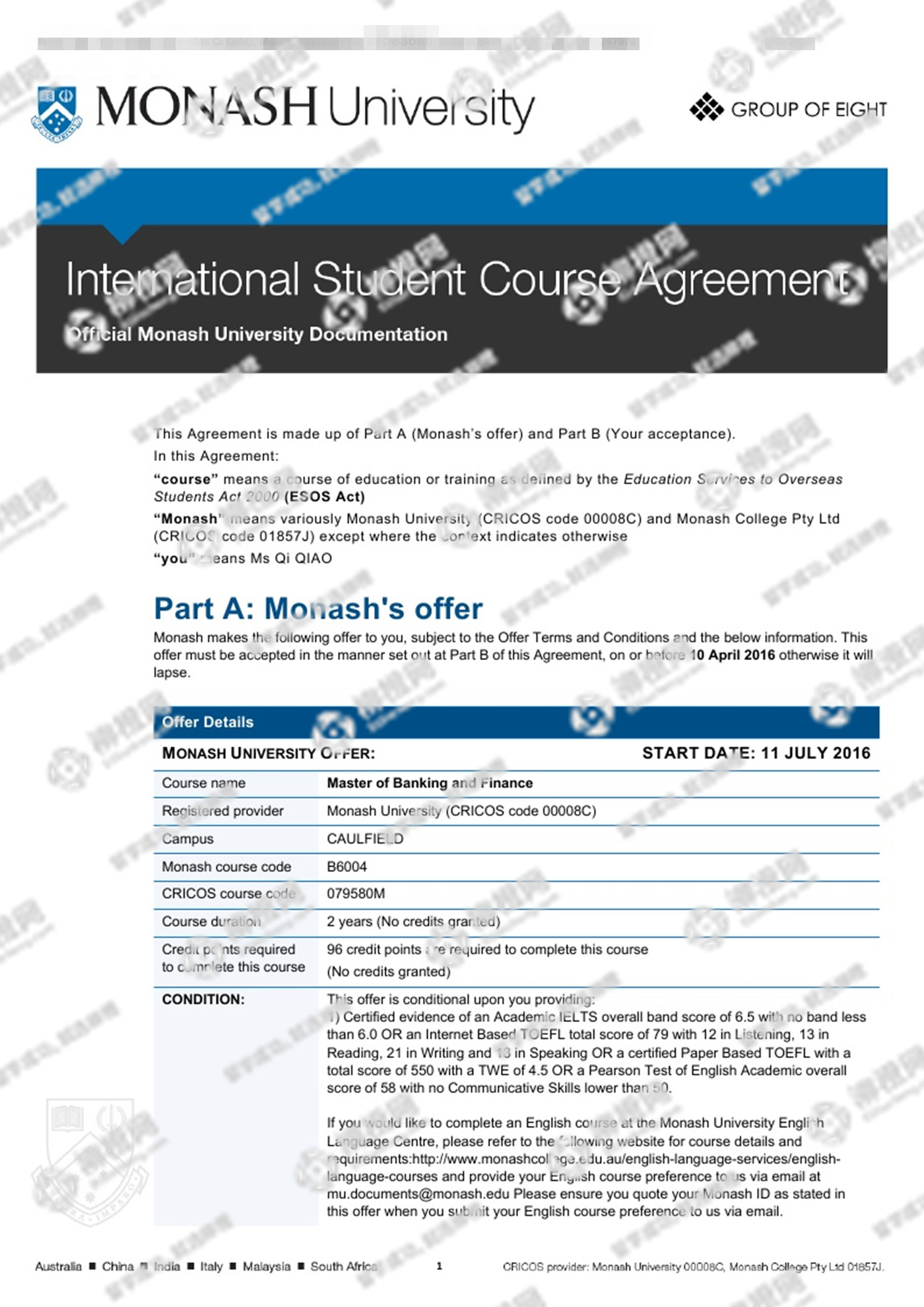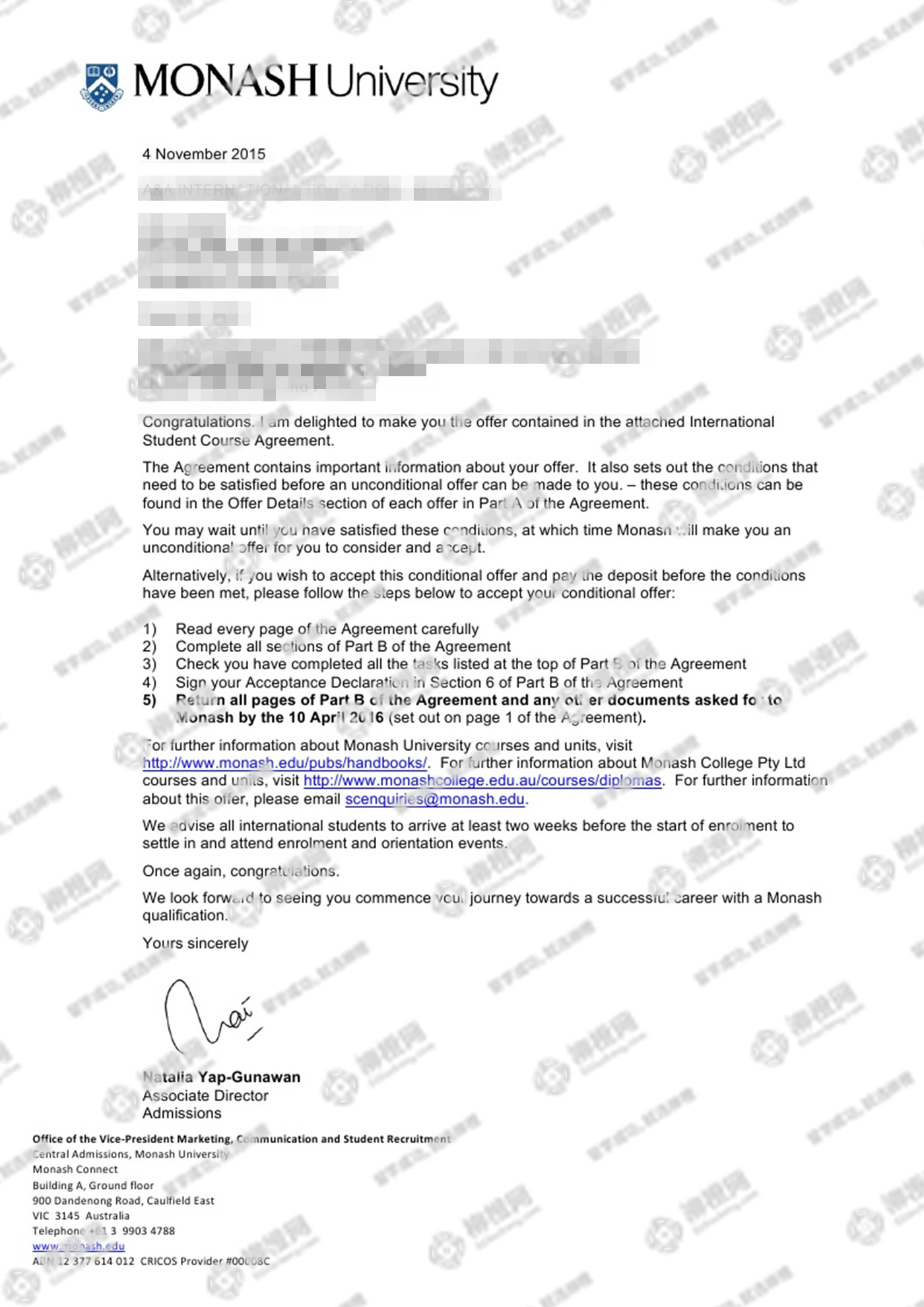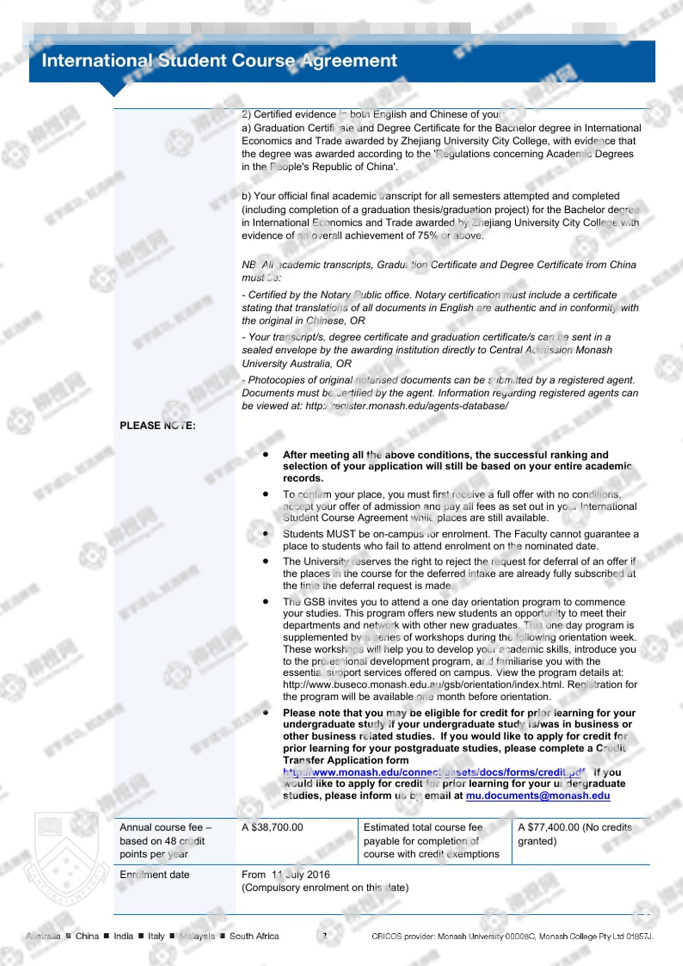 乔同学,浙江大学城市学院,GPA79.4分,在上海柳橙网申请到了澳洲莫纳什大学offer,恭喜!