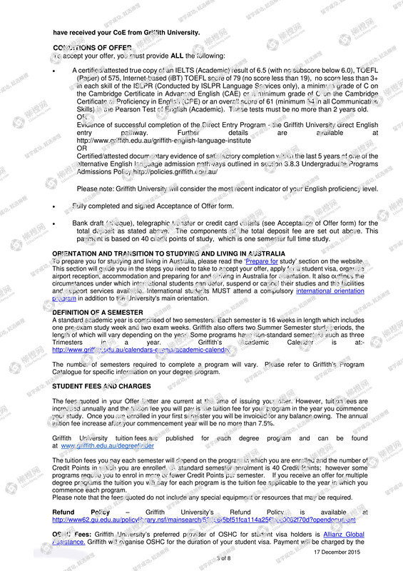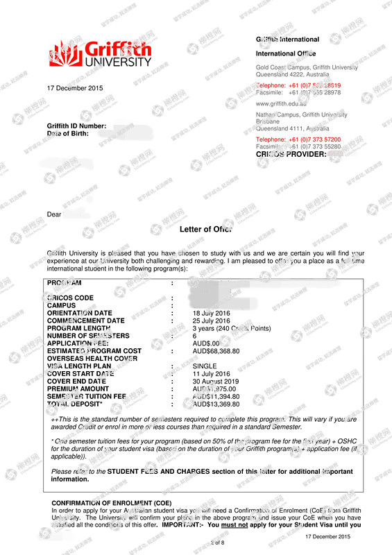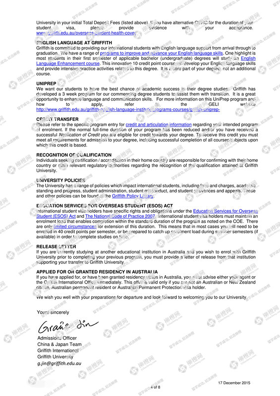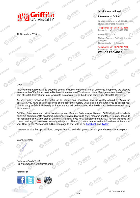 谢同学,西安电力高等专科学校,GPS80分,在上海柳橙网申请到了澳洲格里菲斯大学offer,恭喜!