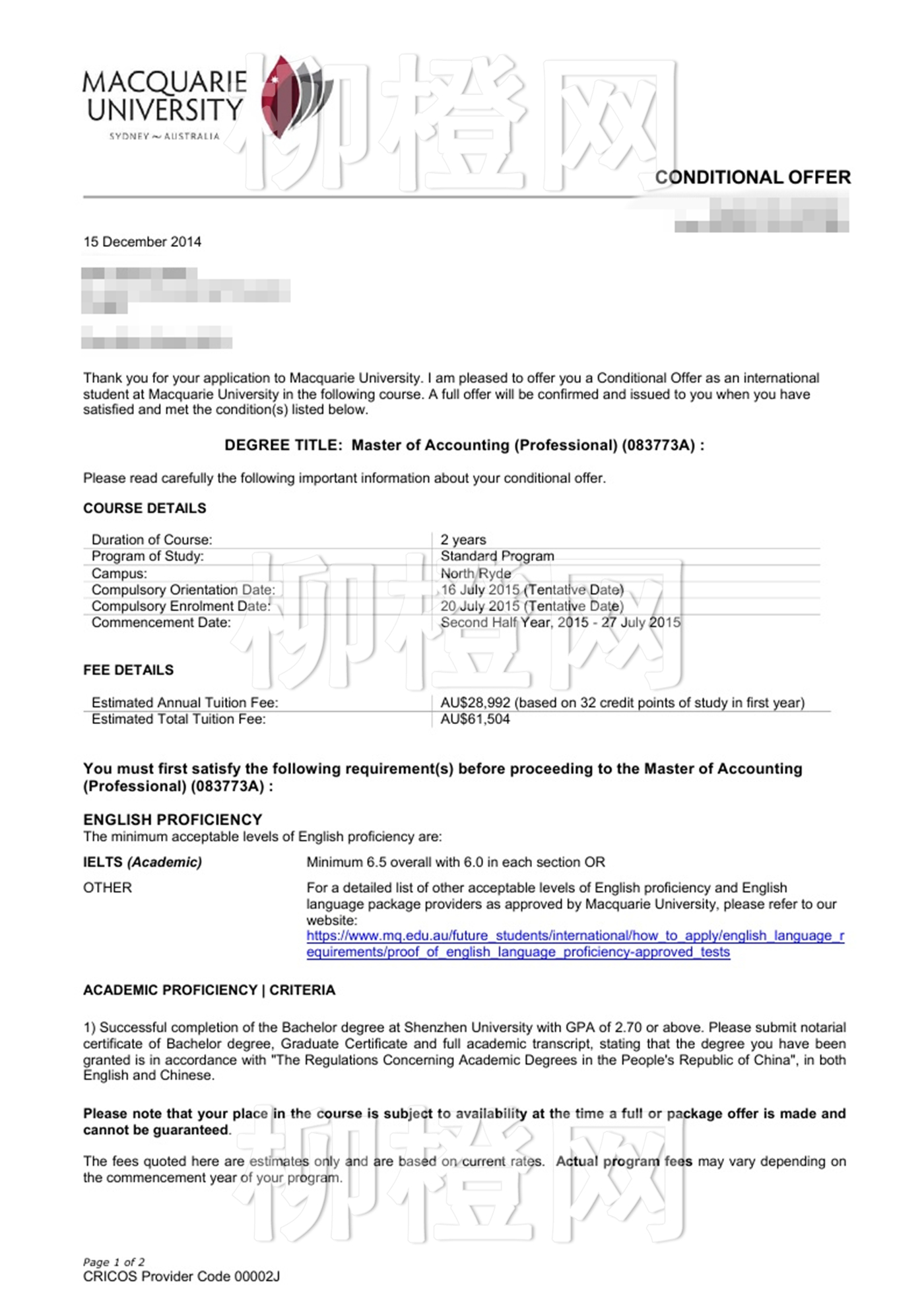 国内双非院校背景的文同学,柳橙运用了互联网留学的优势,高效的服务,专业的指导,帮助学生扬长避短,顺利拿到了澳大利亚最受澳洲人青睐的大学麦考瑞大学的OFFER