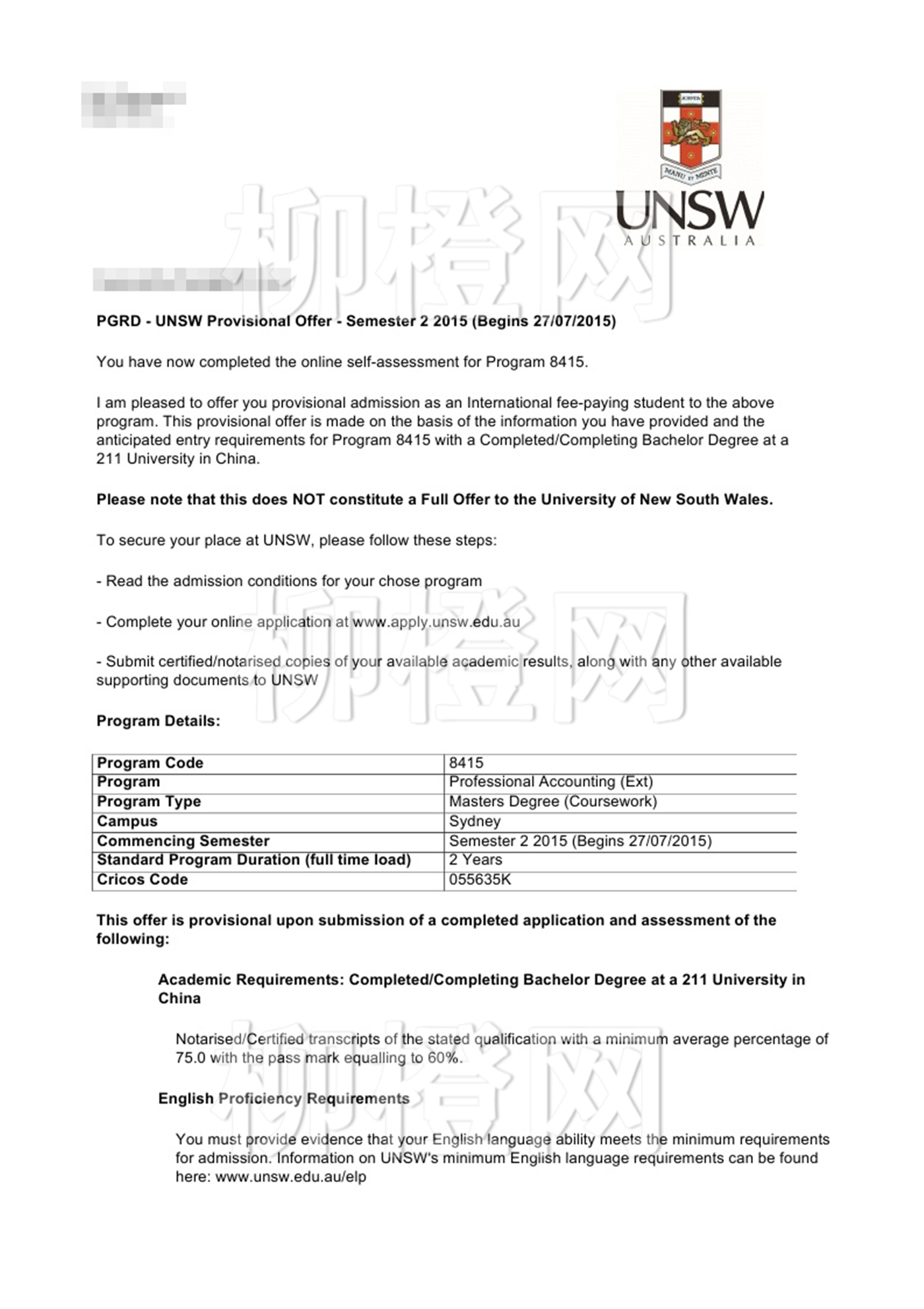 国内211院校背景的李同学,柳橙运用了互联网留学的优势,高效的服务,专业的指导,帮助学生扬长避短,顺利拿到了澳大利亚八大名校新南威尔士大学的OFFER
