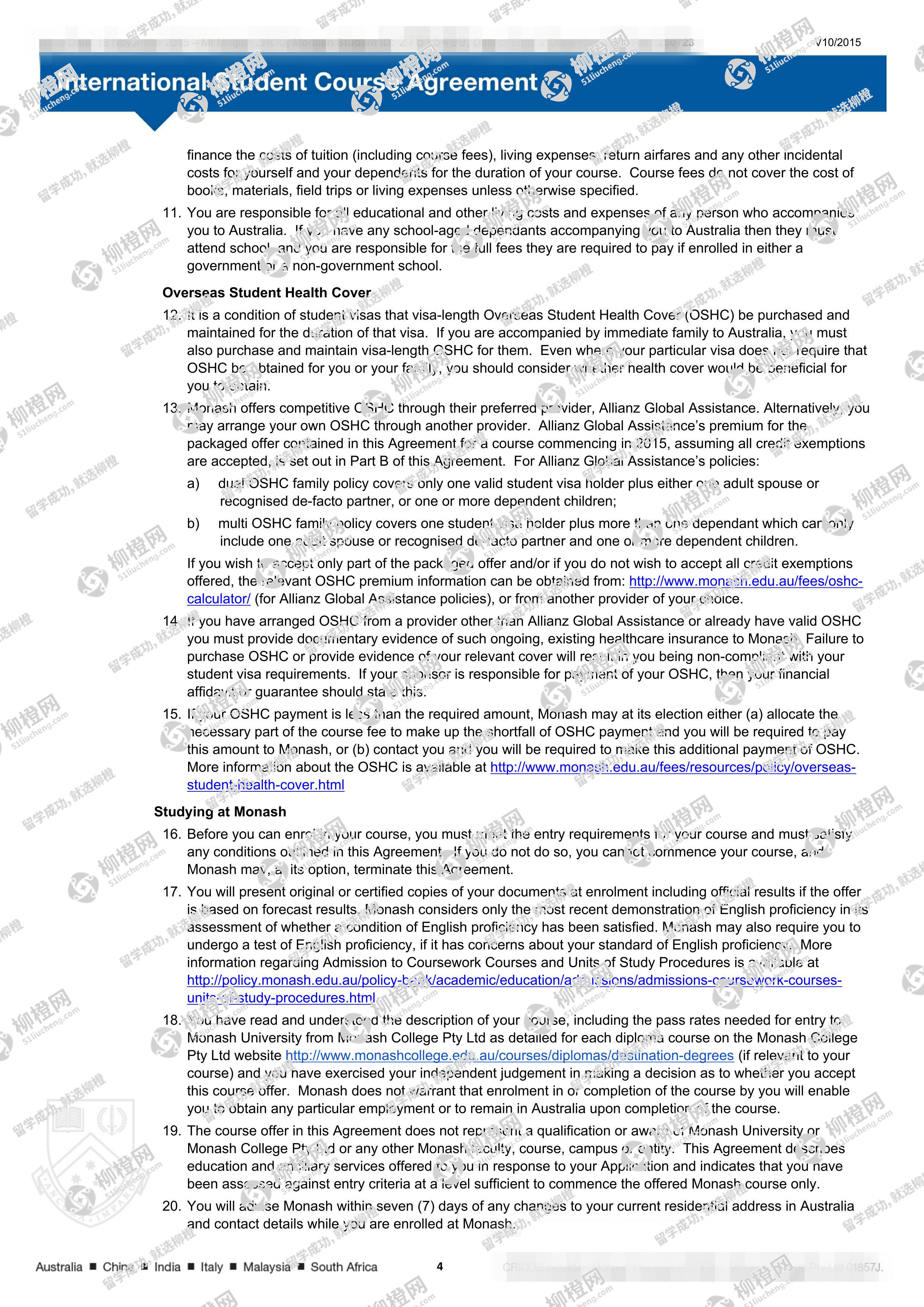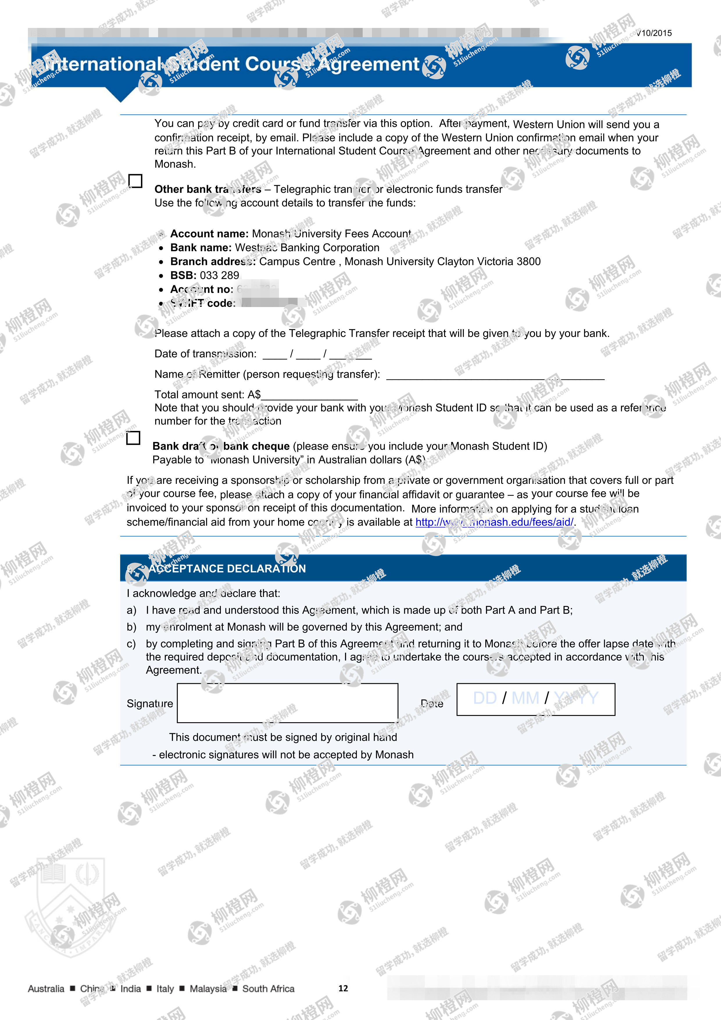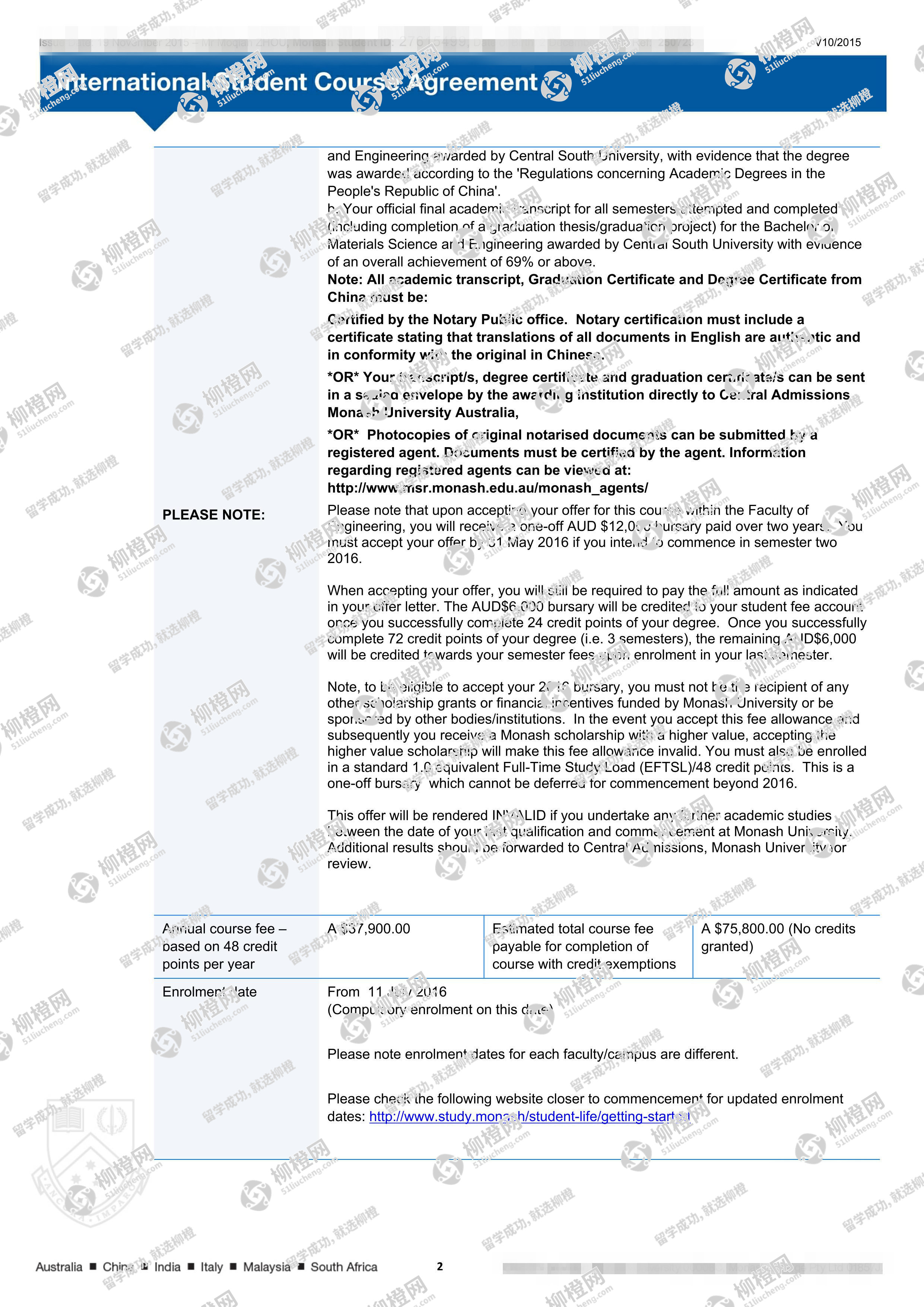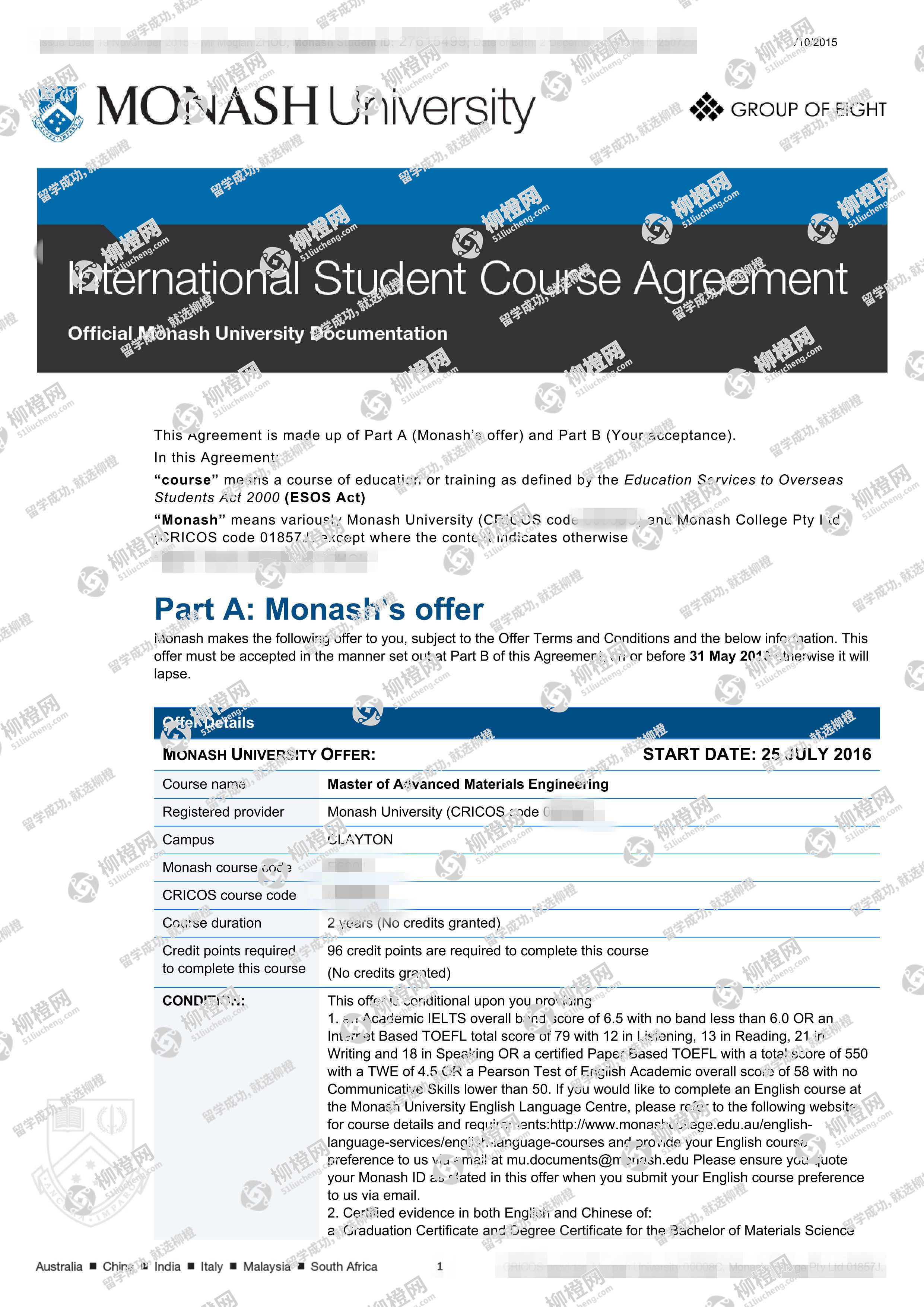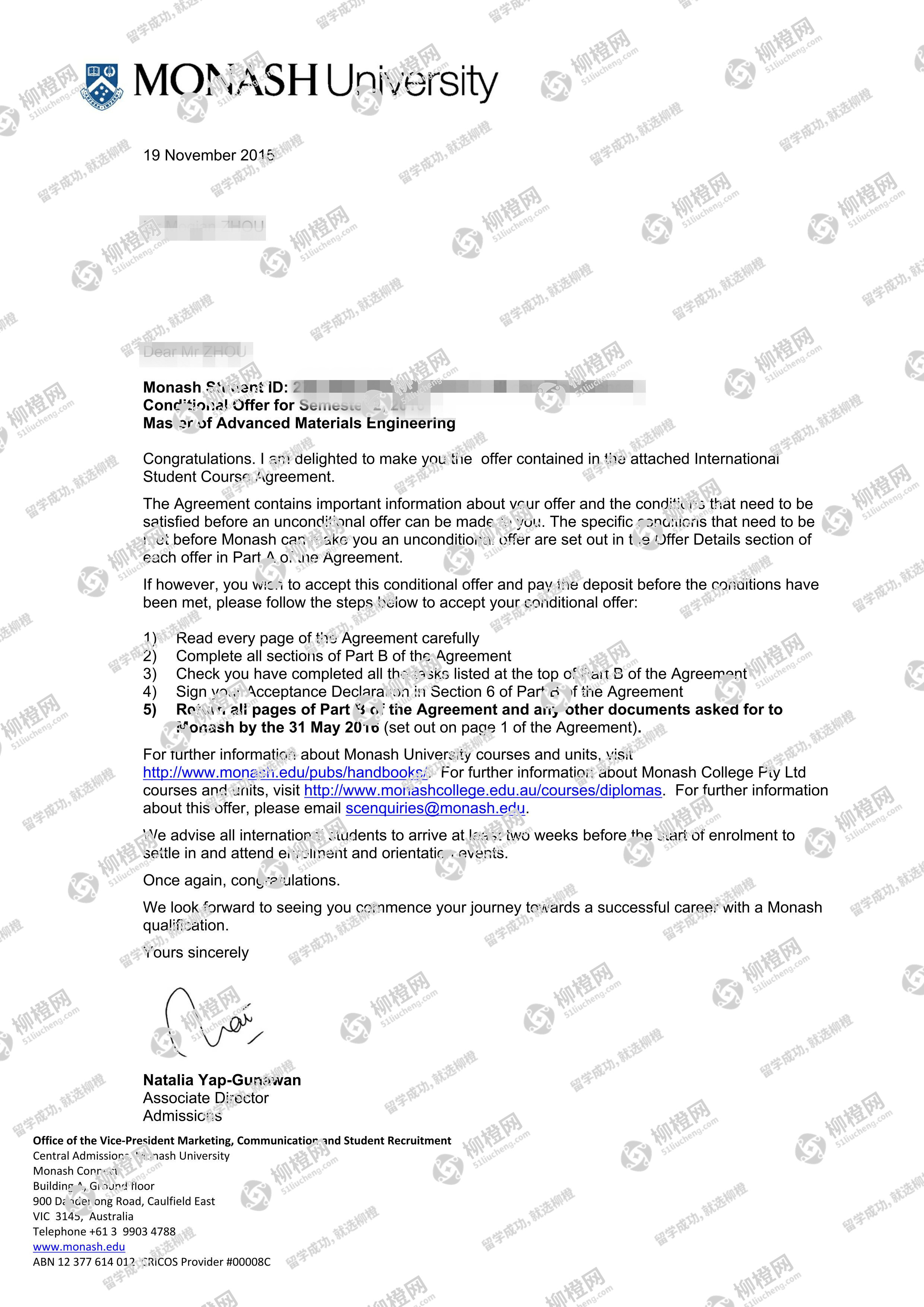周同学,中南大学,GPA80.19分,在上海柳橙网申请到了澳洲莫纳什大学offer,恭喜!