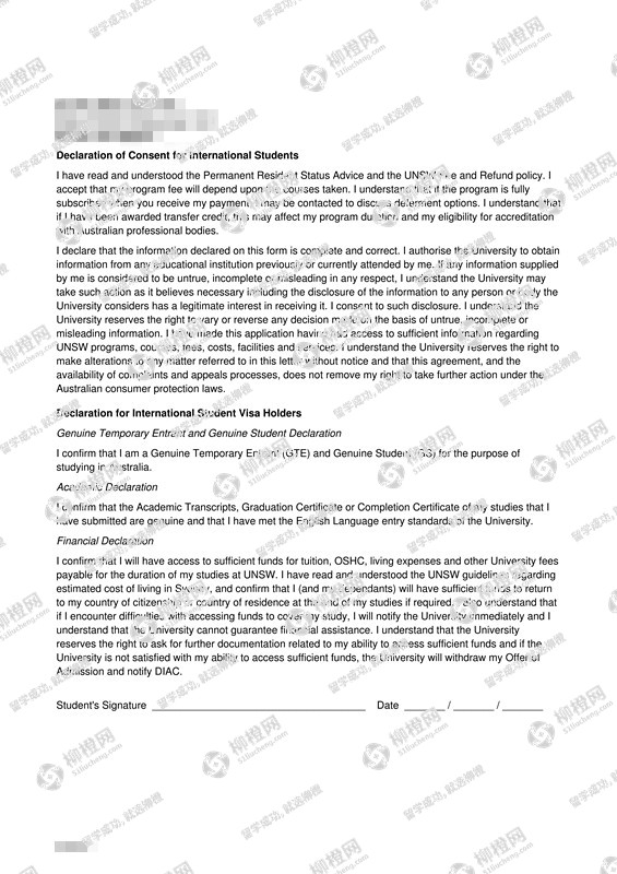 文同学,西南石油大学,GPA2.93,在上海柳橙网申请到了澳洲新南威尔士大学offer。恭喜!
