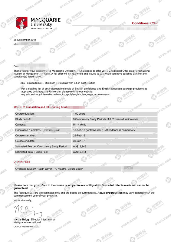 黄同学,贵州省贵阳医学院,GPA85分,在上海柳橙网申请到了澳洲麦考瑞大学offer。恭喜!