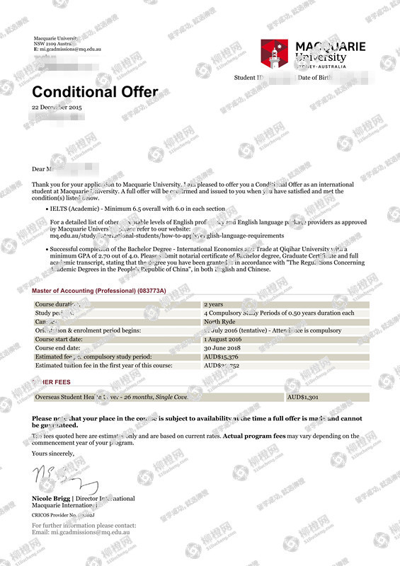 韦同学,齐齐哈尔大学,GPA75分,在上海柳橙网申请到了澳洲麦考瑞大学offer,恭喜!