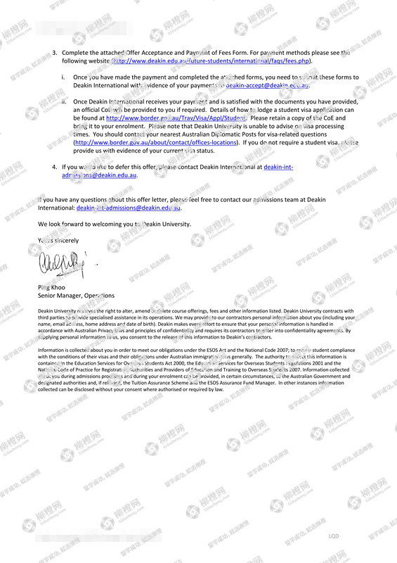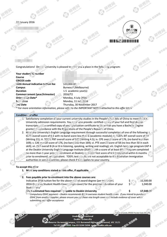韦同学,齐齐哈尔大学,GPA75,在上海柳橙网申请到了澳洲迪肯大学offer。恭喜!