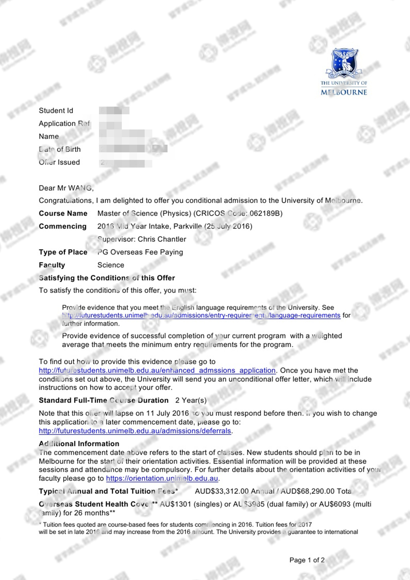 王同学,华中师范大学,GPA83.3,在上海柳橙网申请到了澳洲墨尔本大学offer,恭喜!