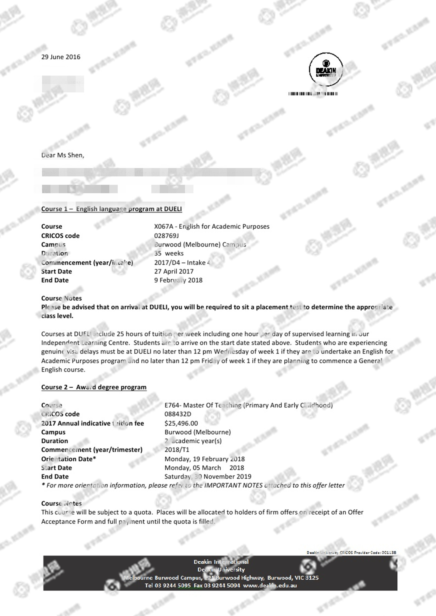 沈同学,湖南师范大学,GPA78,在上海柳橙网申请到了澳洲迪肯大学offer,恭喜!