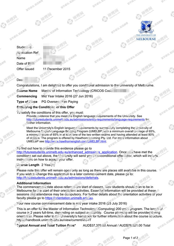 宋同学澳洲墨尔本大学offer