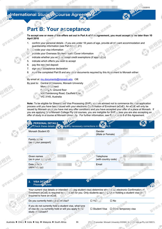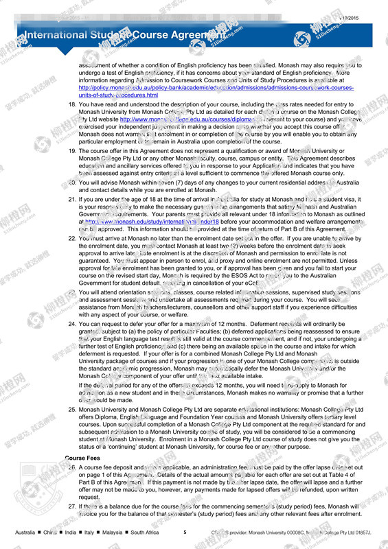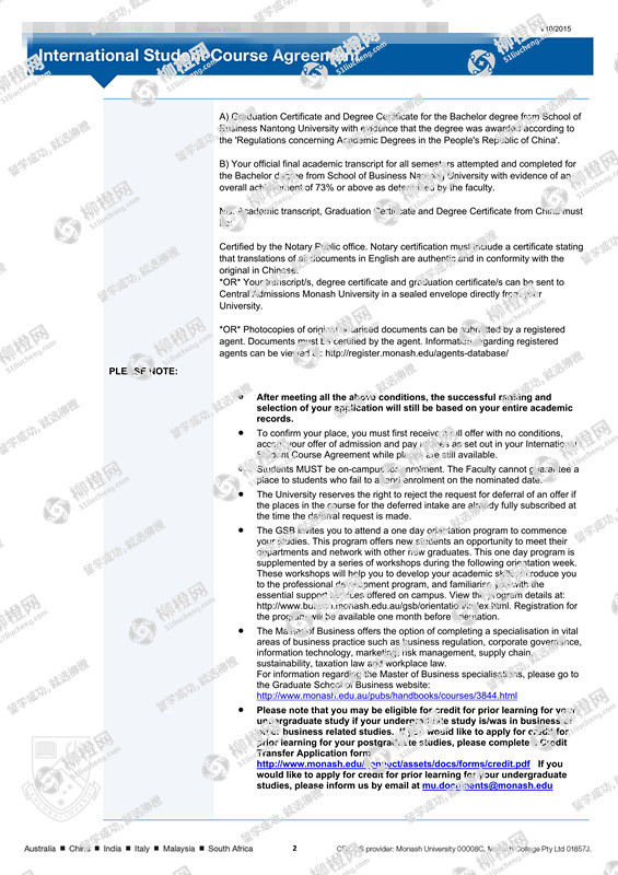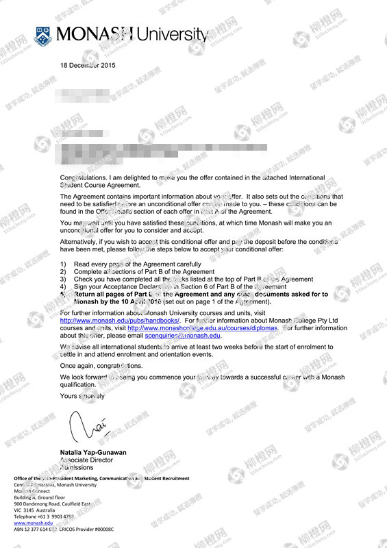 杨同学澳洲莫纳什大学offer