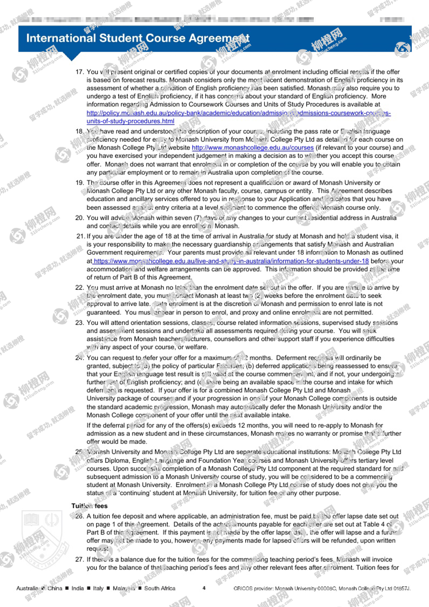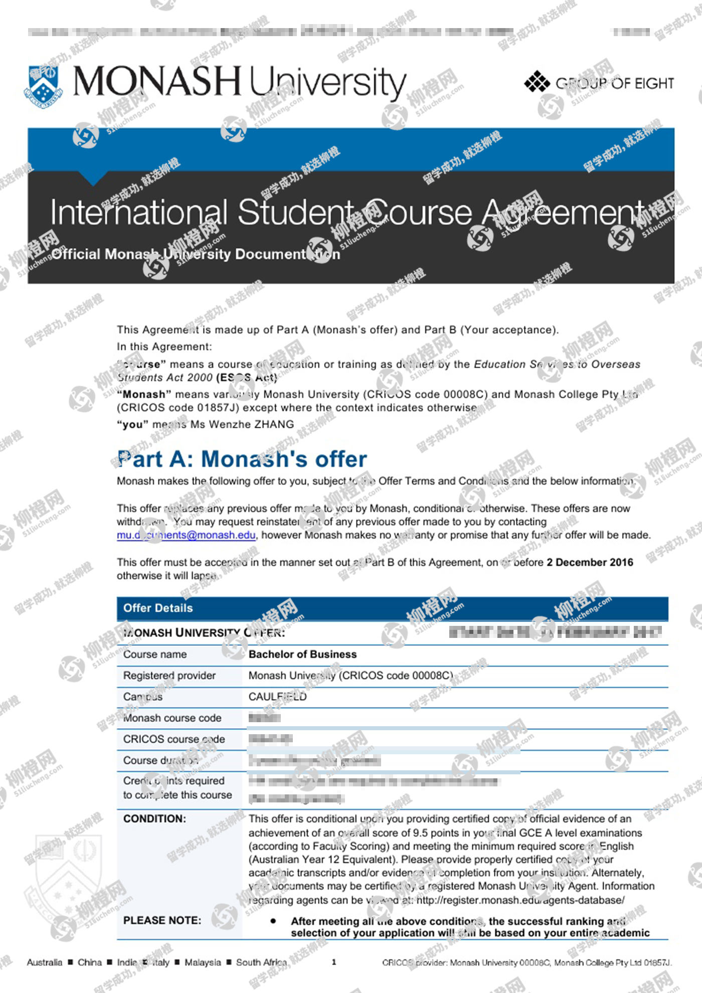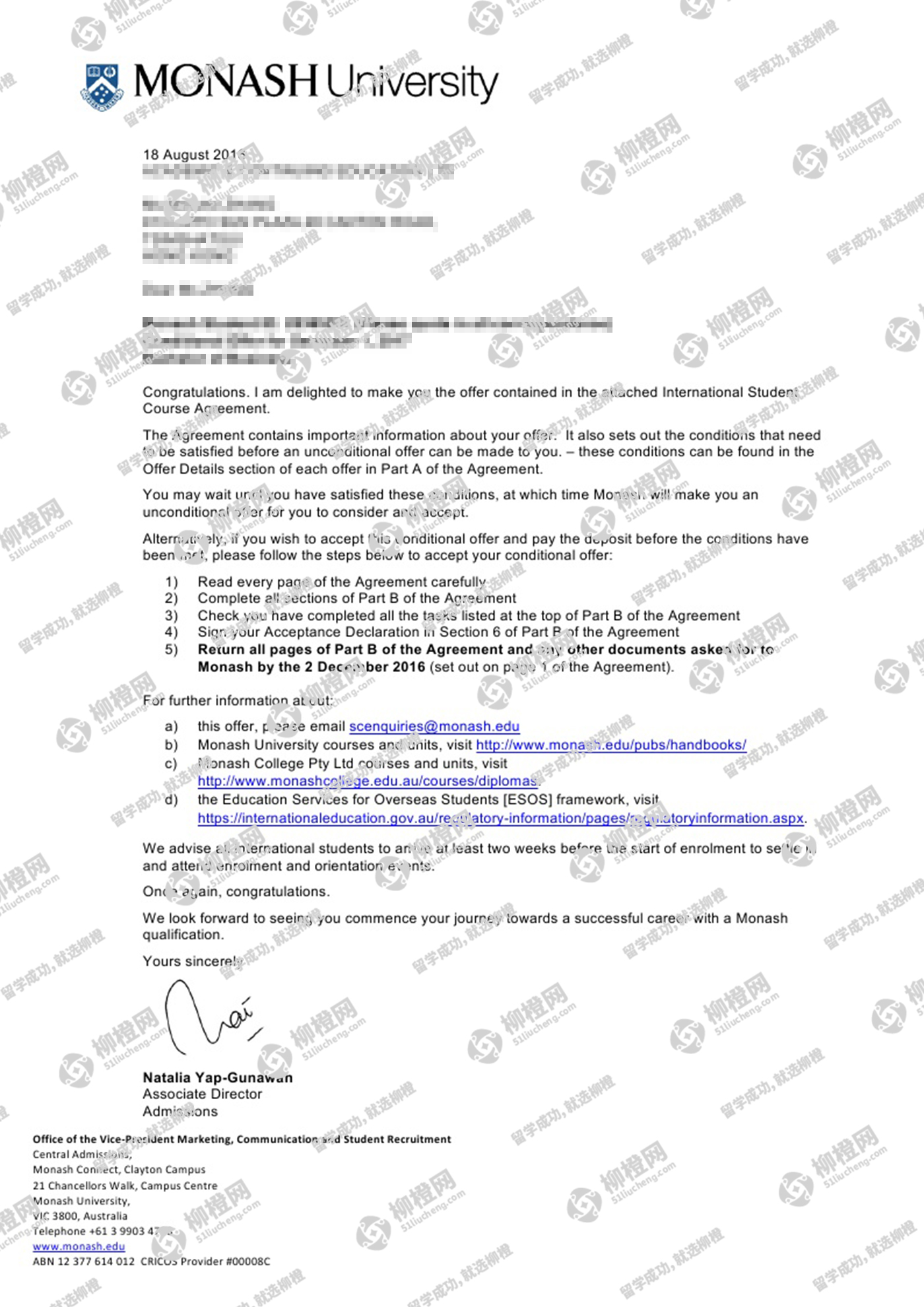 张同学澳洲莫纳什大学offer