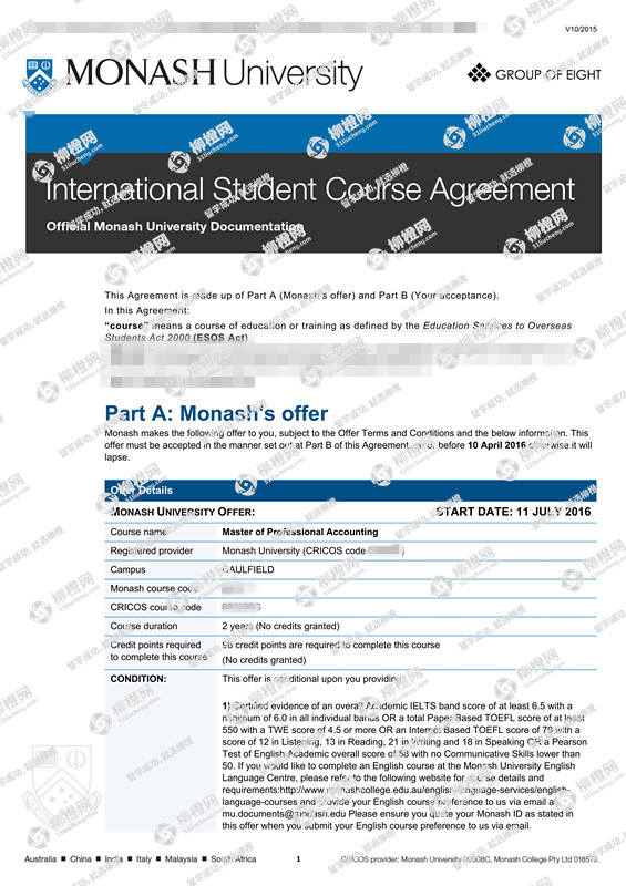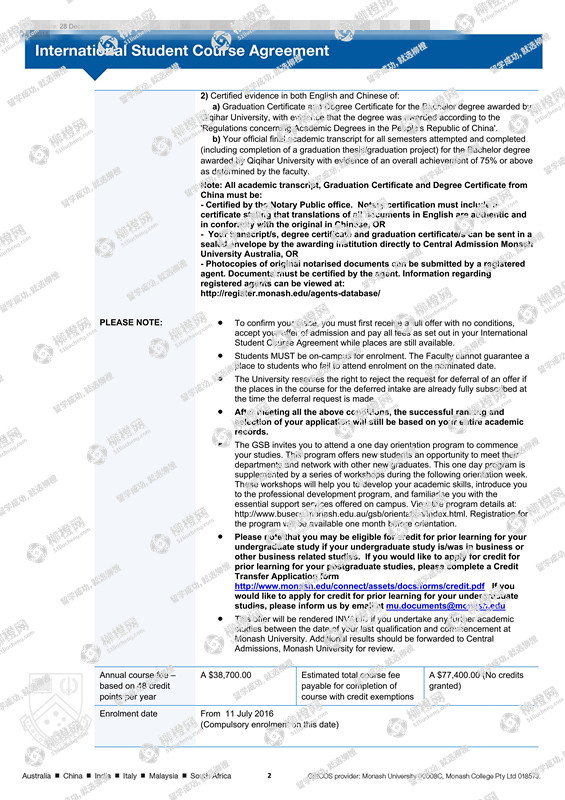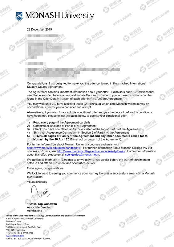 韦同学澳洲莫纳什大学offer