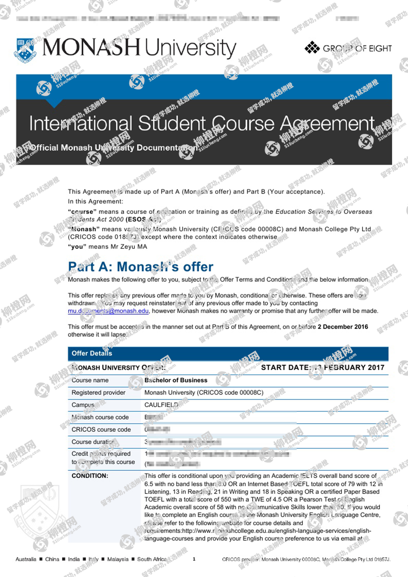 预祝留学成功!