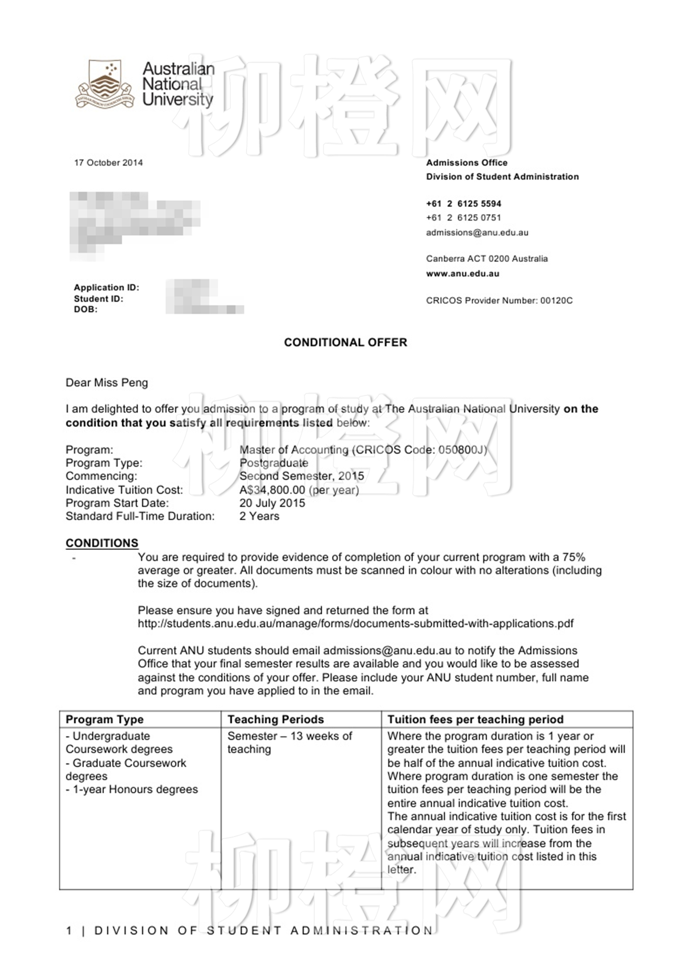 彭同学背景不错,也是很顺利的拿到了澳国立的offer