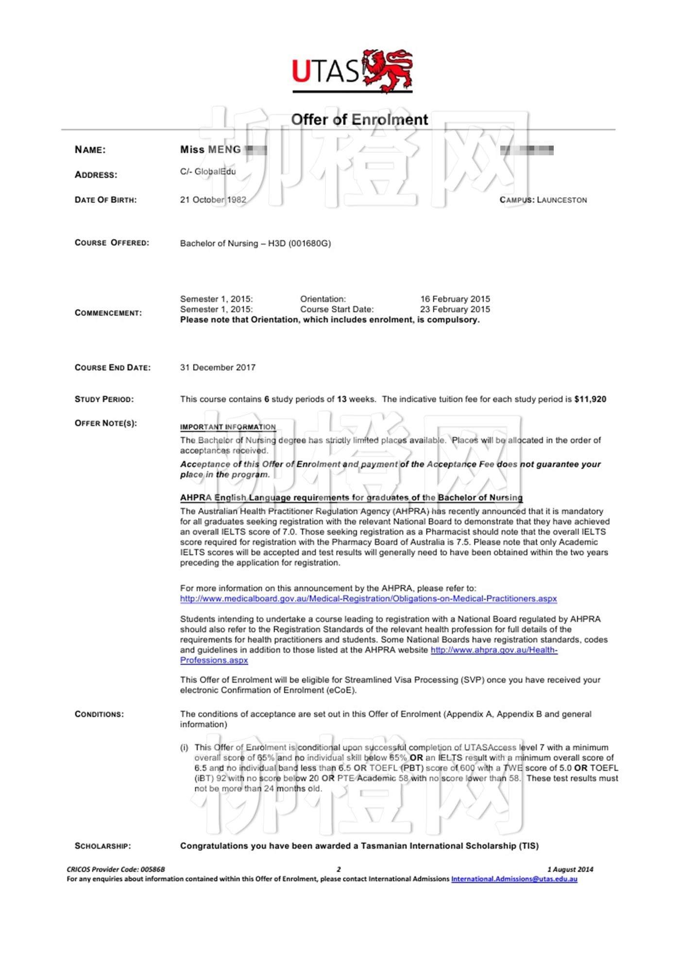 塔斯马尼亚大学是澳洲四大历史名校之一,2009年成为澳大利亚五星级大学,是澳大利亚历史最悠久、最具国际声誉的四所大学之一,其教学、研究和学生服务设施一流,连续获得学生服务国家奖和澳洲大学最高研究奖。并且护理专业在澳大利亚也非常著名。这也是孟同学选择塔斯马尼亚大学的原因之一。恭喜孟同学!