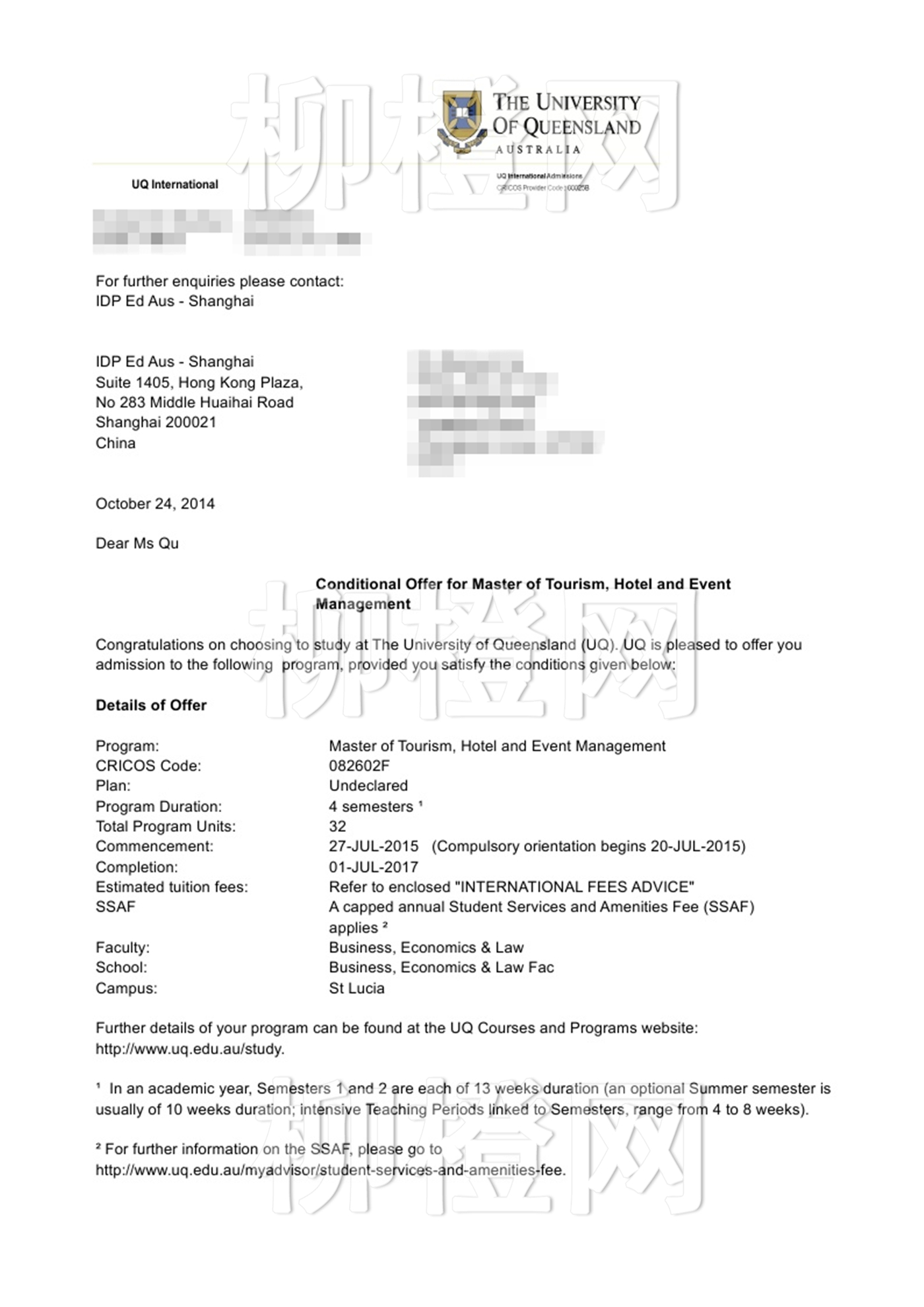 昆大是澳洲八大名校之一,位于澳大利亚东部的海滨城市布里斯班,有着澳洲最著名的黄金海岸和日光海岸。昆士兰大学的旅游管理专业不仅传授行业的从业技能和管理知识,学生们更有机会在知名的酒店里实习。专业知识结合实际经验,炙手可热的酒店及旅游人才由此诞生。恭喜屈同学!