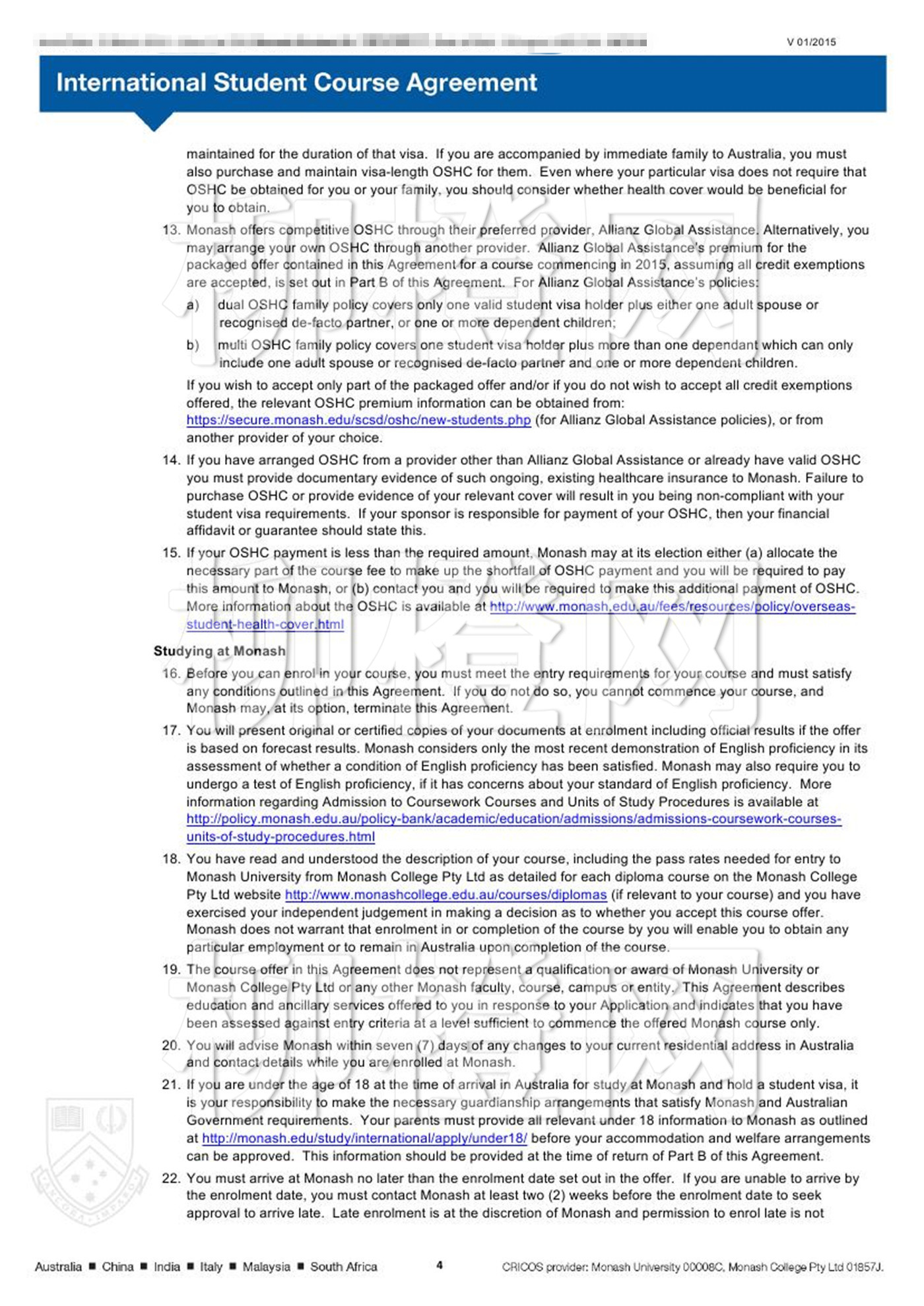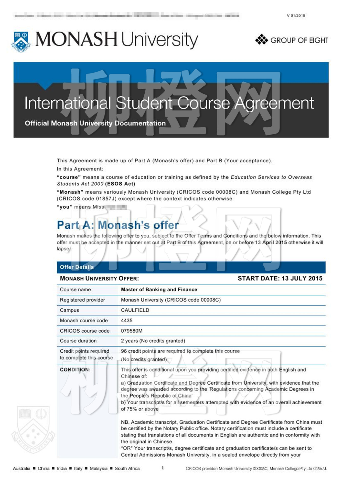 邱同学 双非财经类院校毕业 均分83 成功申请到了澳洲八大之一莫纳什大学 银行与金融专业