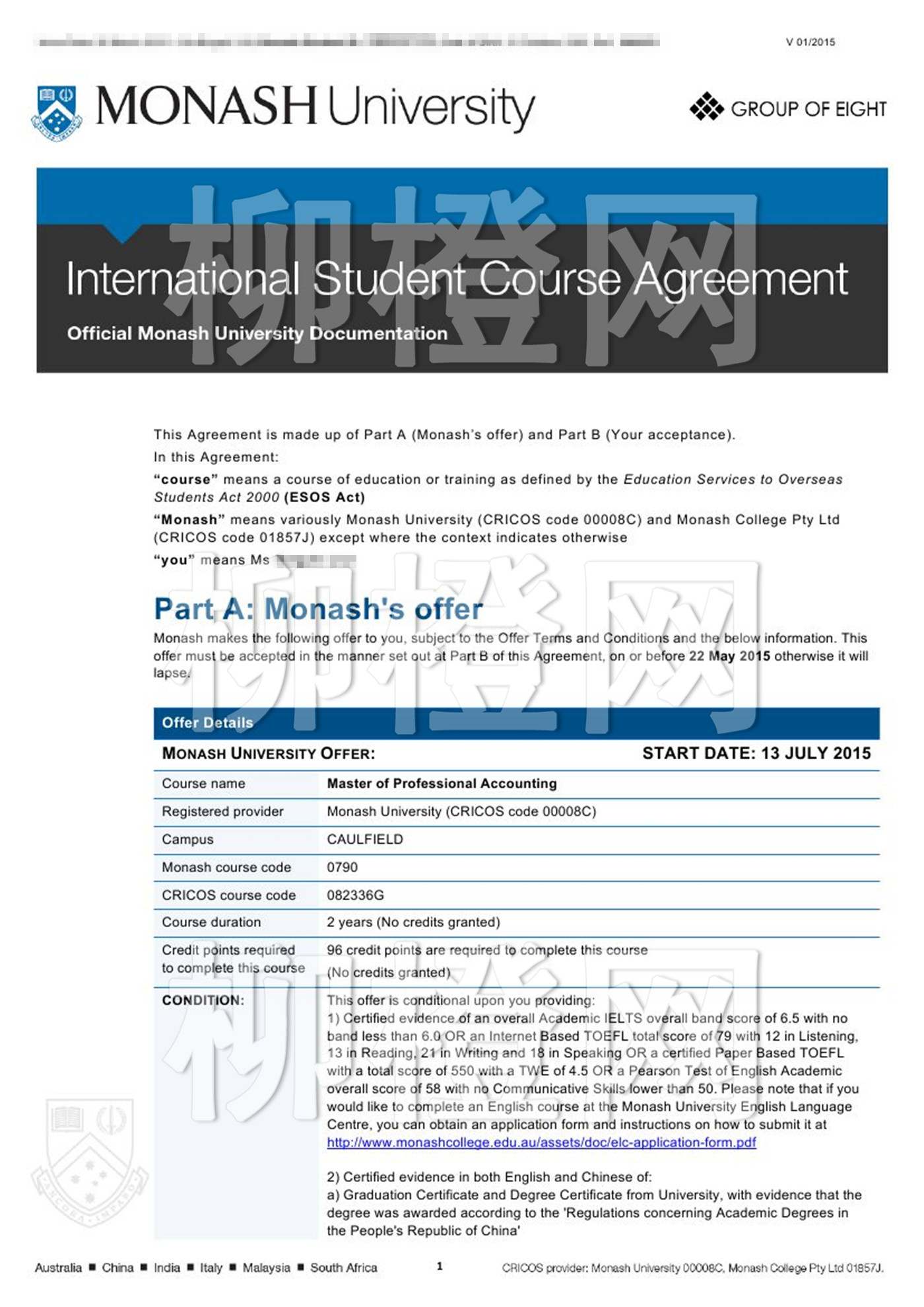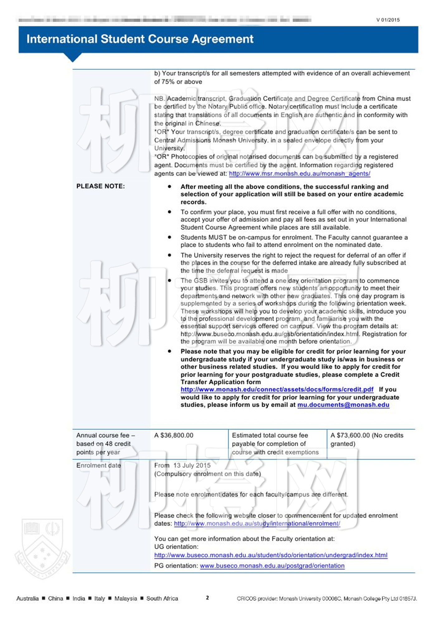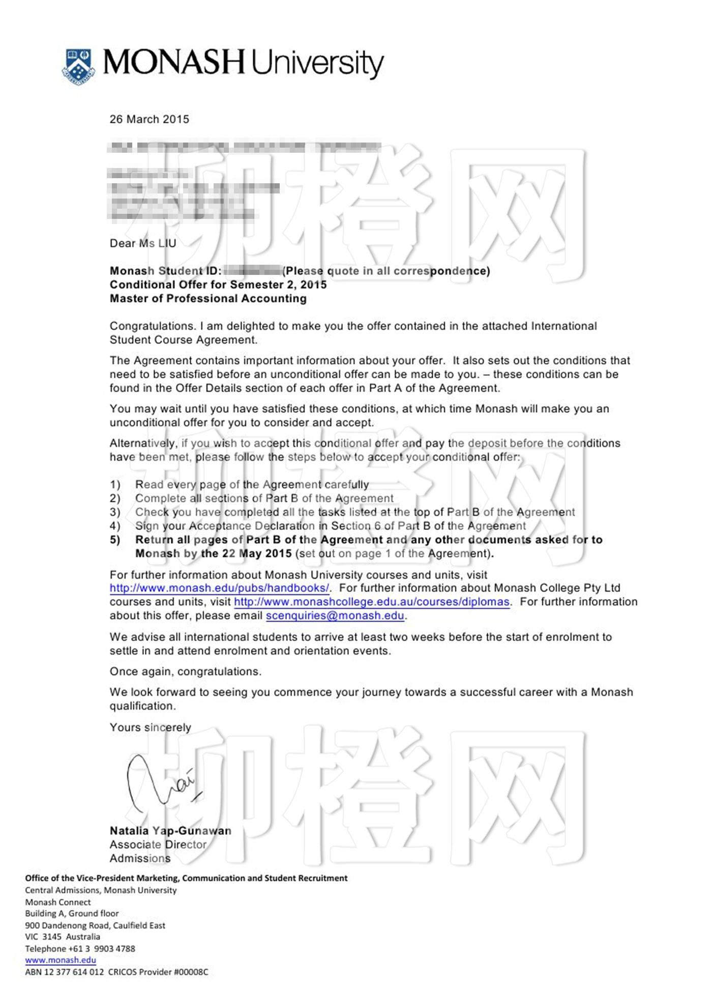 华东师范大学,绩点3.74,在柳橙网老师的专业指导下成功申请到了澳洲莫纳什大学