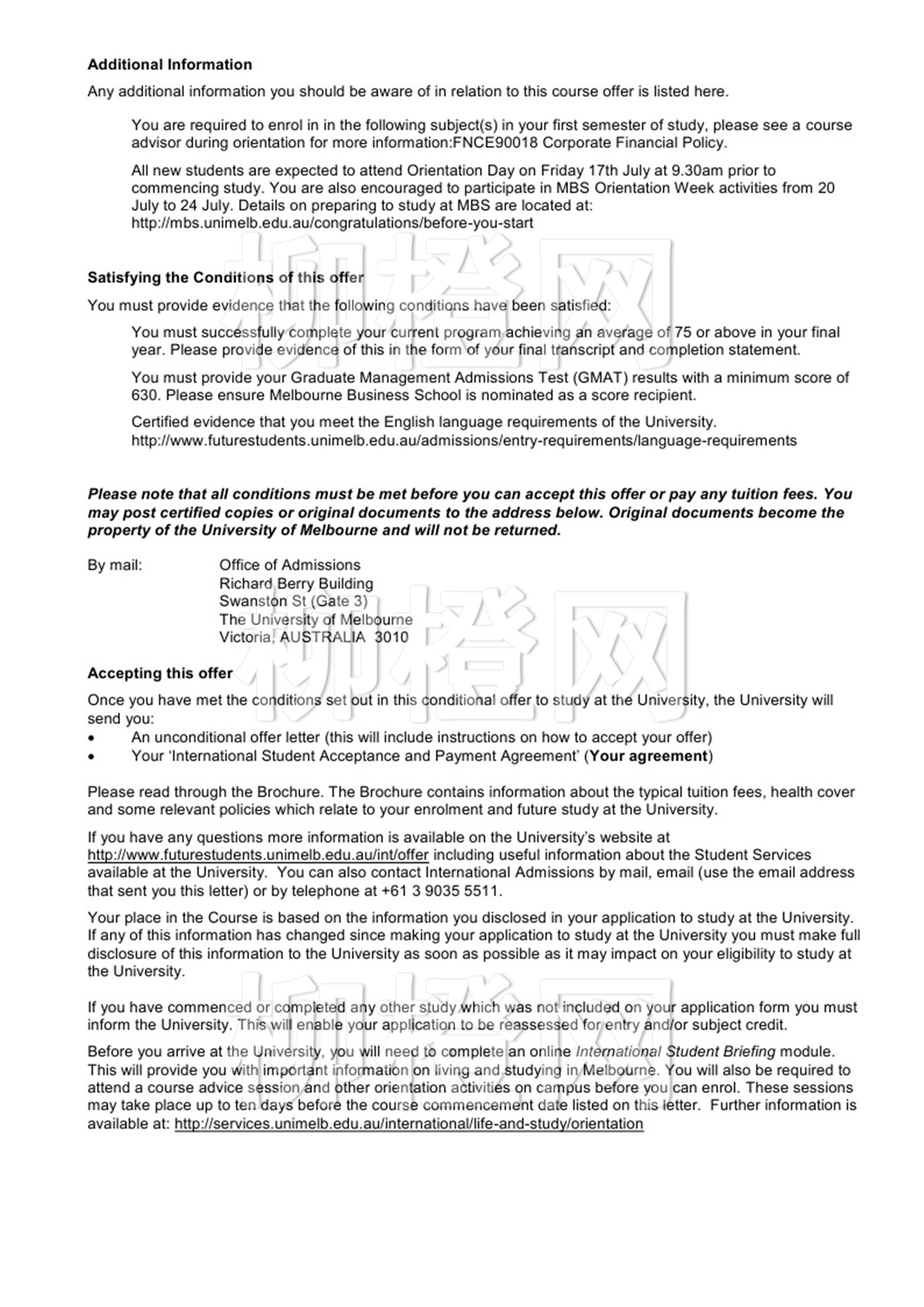 学生院校背景优秀但是均分弱势,在3.0不到的情况下成功申请到了墨尔本大学的金融专业