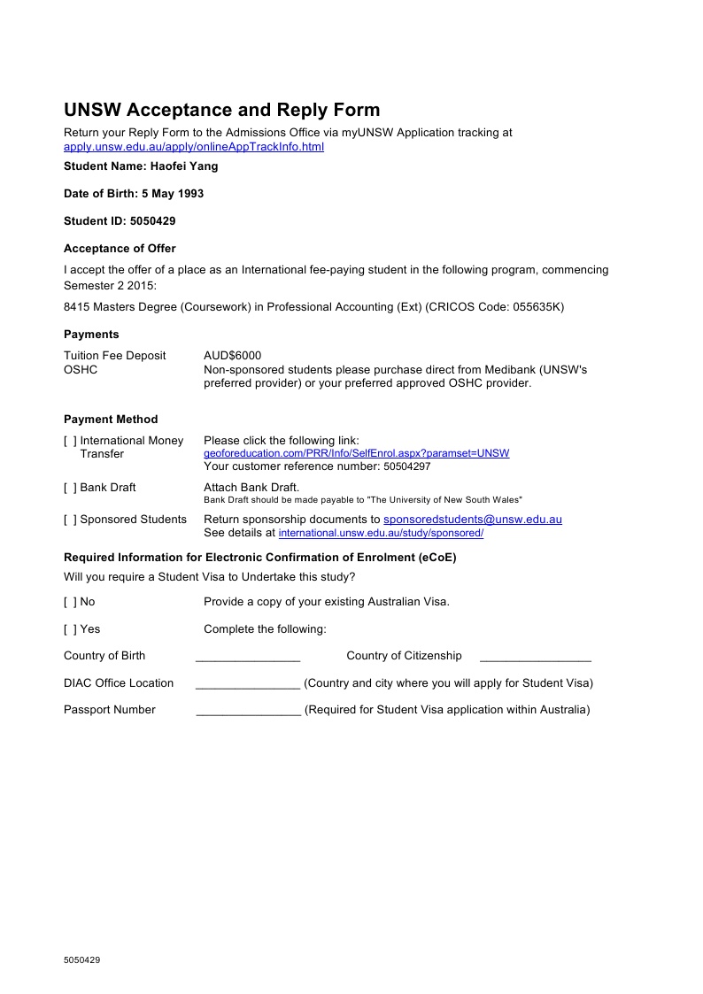 宁波诺丁汉大学,均分68,在柳橙网的帮助下申请到新南威尔士的商科,特此祝贺
