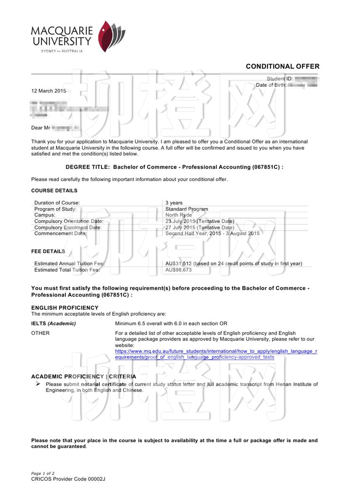 刘同学虽然不是985,211重点大学毕业的,但是求学欲非常高,并且结合了自身的条件,在我们的指导下,成功的拿到了麦考瑞的offer
