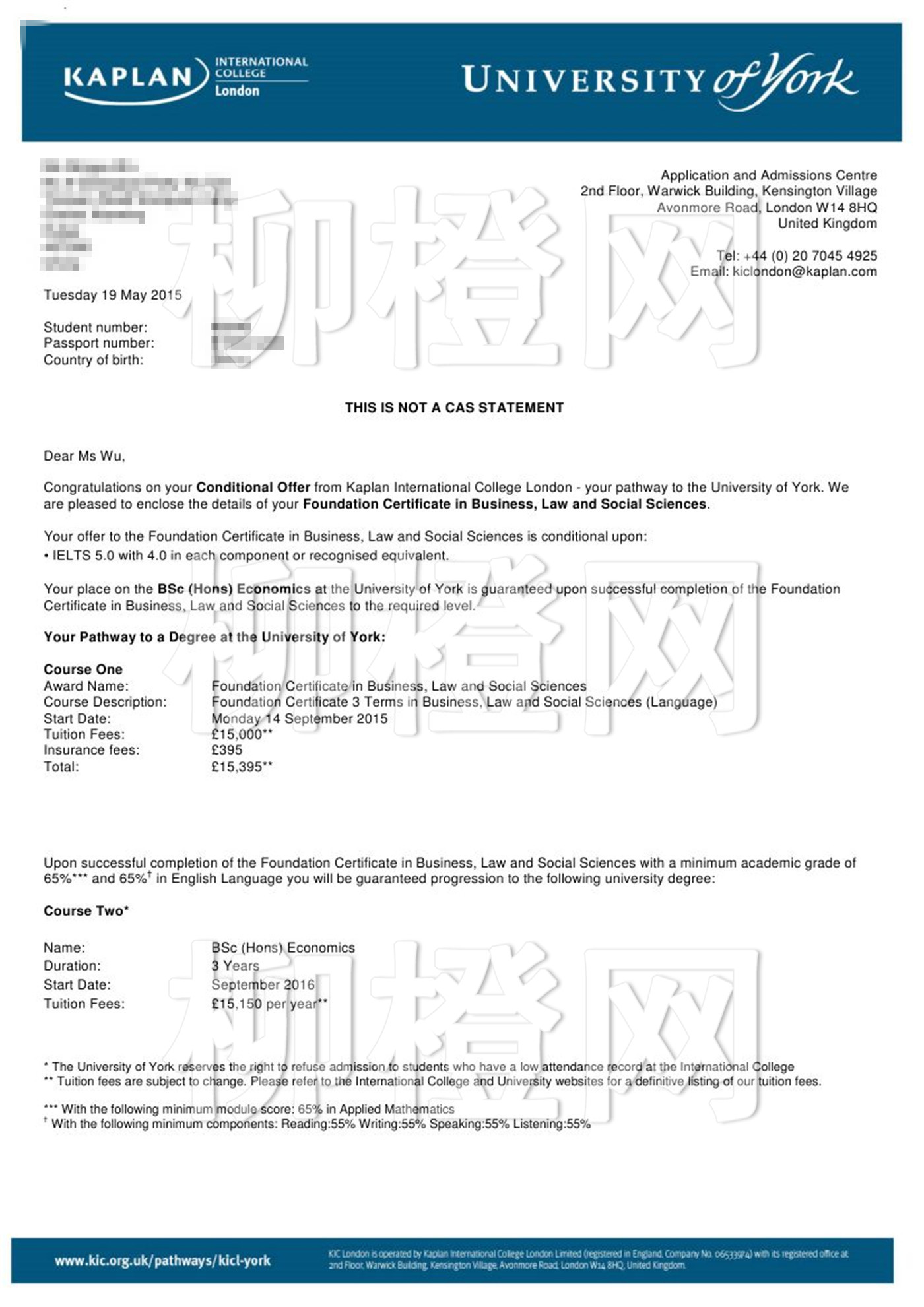 厦门大学嘉庚学院,均分82,在柳橙网老师的专业指导下成功申请到了英国约克大学