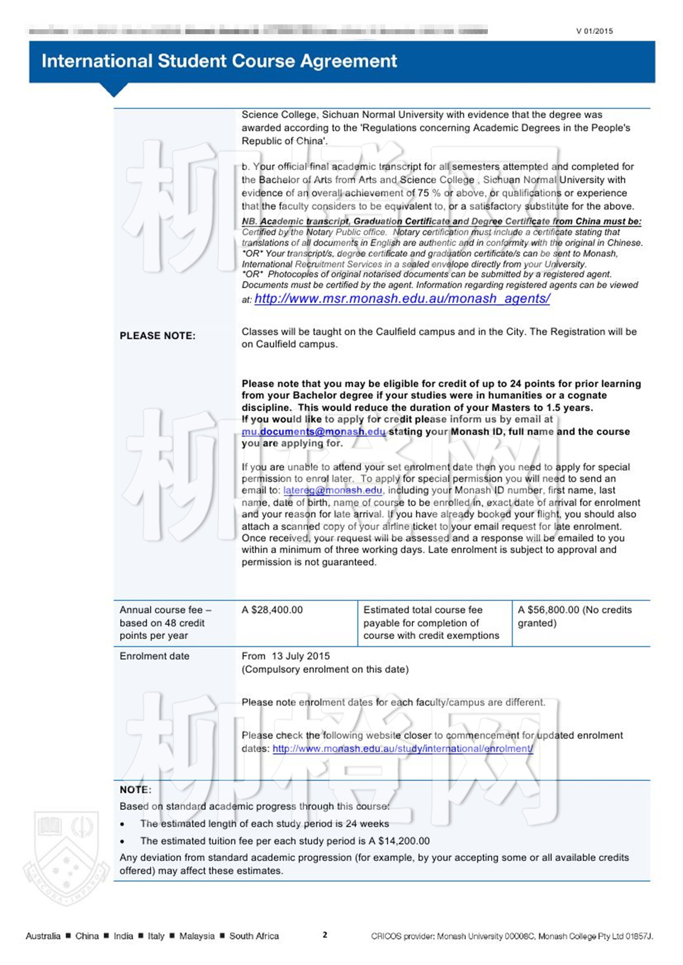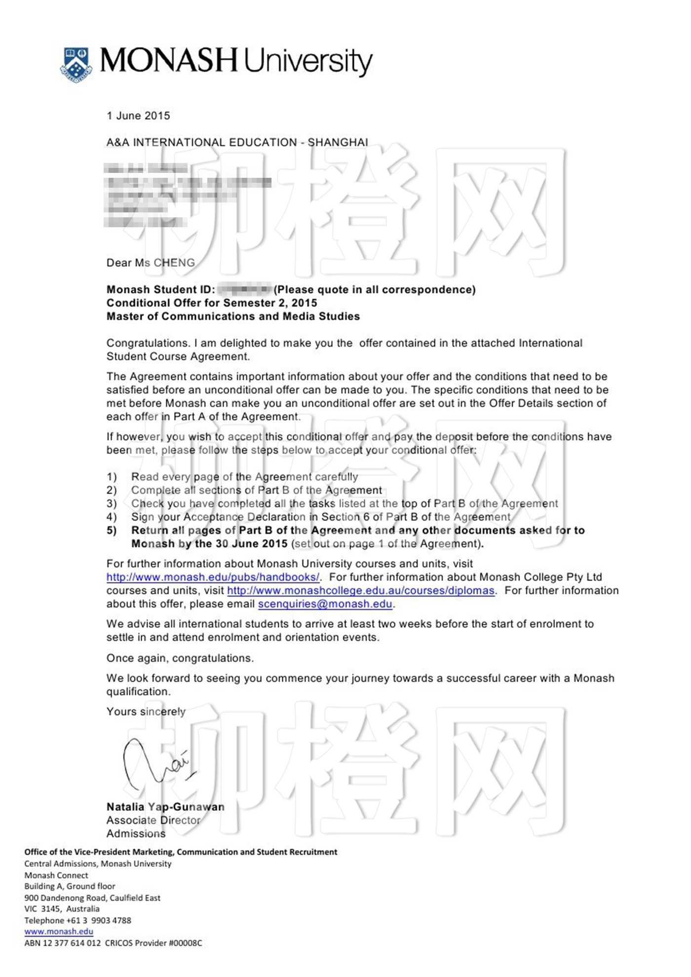 四川师范大学文理学院,均分85,在柳橙网老师的专业指导下成功申请到澳洲莫纳什大学