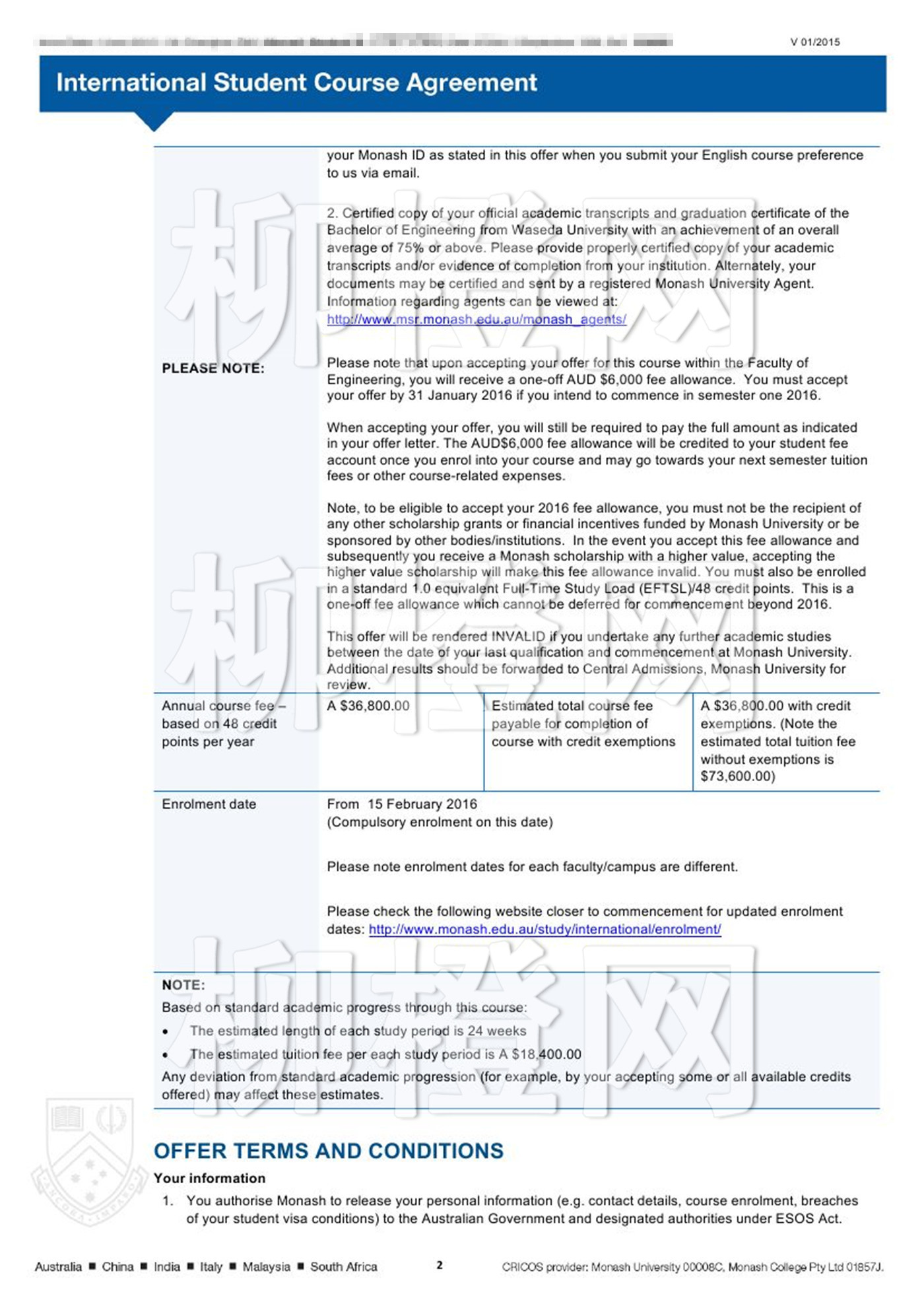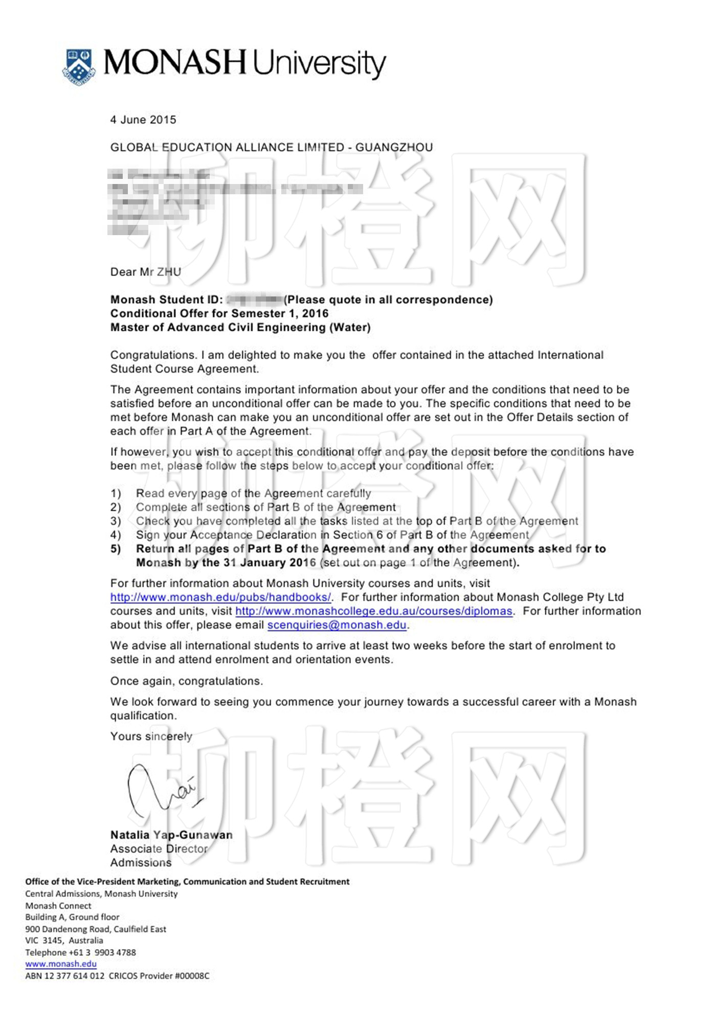 基本早稻田大学,绩点2.54,在柳橙网老师的专业指导下成功申请到英国莫纳什大学