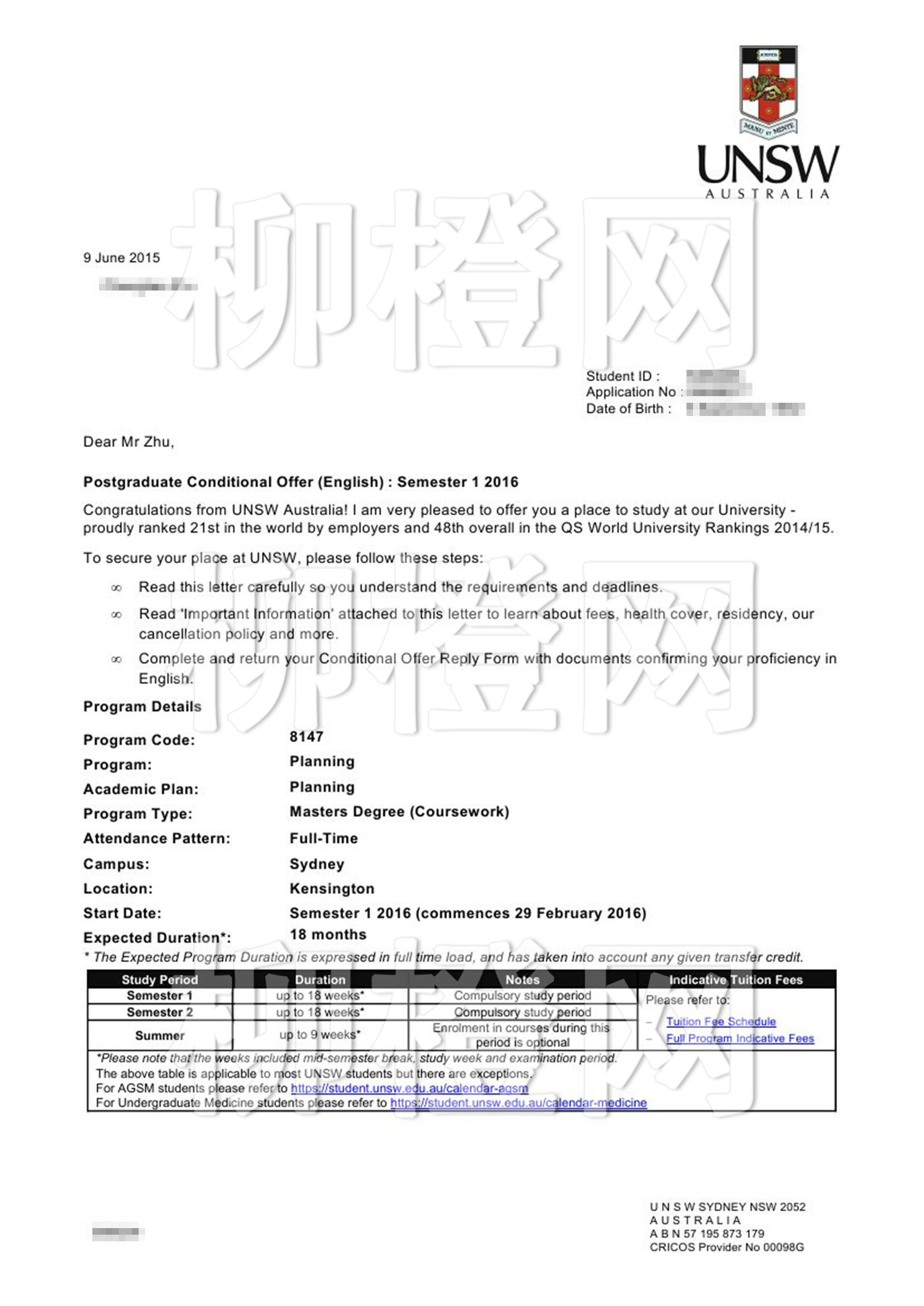 朱同学 本科阶段就读于日本名校的城市环境工程专业 通过柳橙网的规划安排 成功申请到了澳洲工科名校 新南威尔士大学