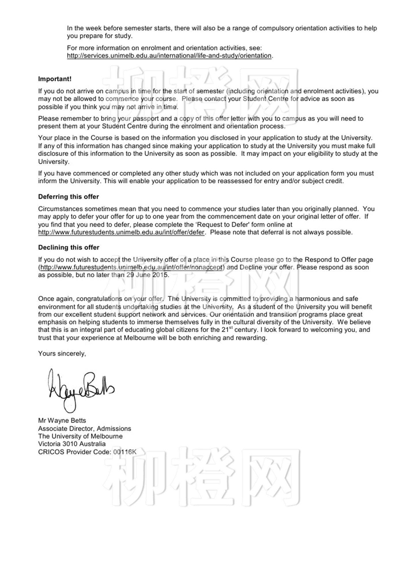 陈同学美国贝勒大学绩点3.21,电气计算机专业,在柳橙网成功申请到澳洲墨尔本大学的Master of Information Technology