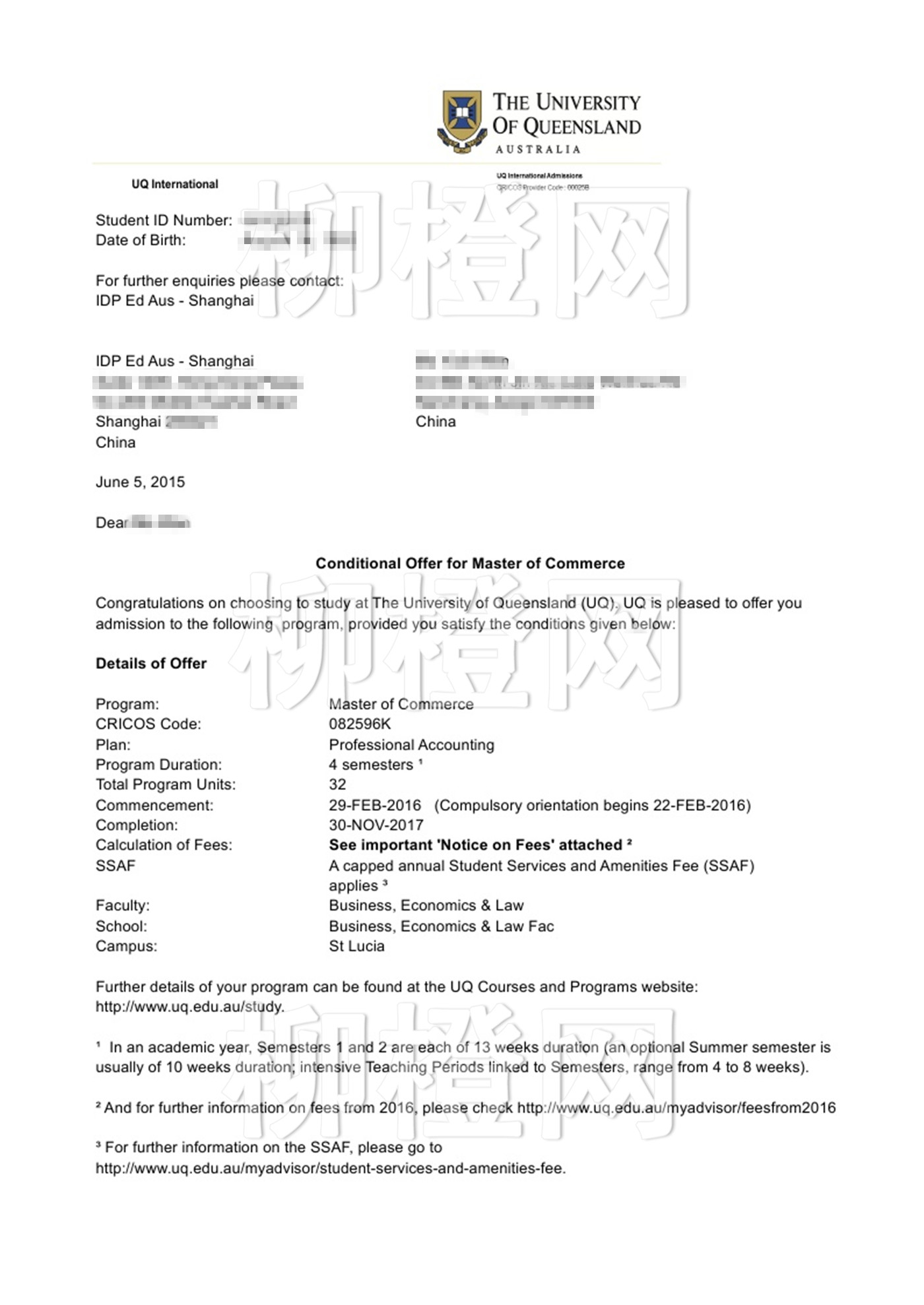 重庆师范大学,均分83,在柳橙网老师的专业指导下成功申请到澳洲昆士兰大学