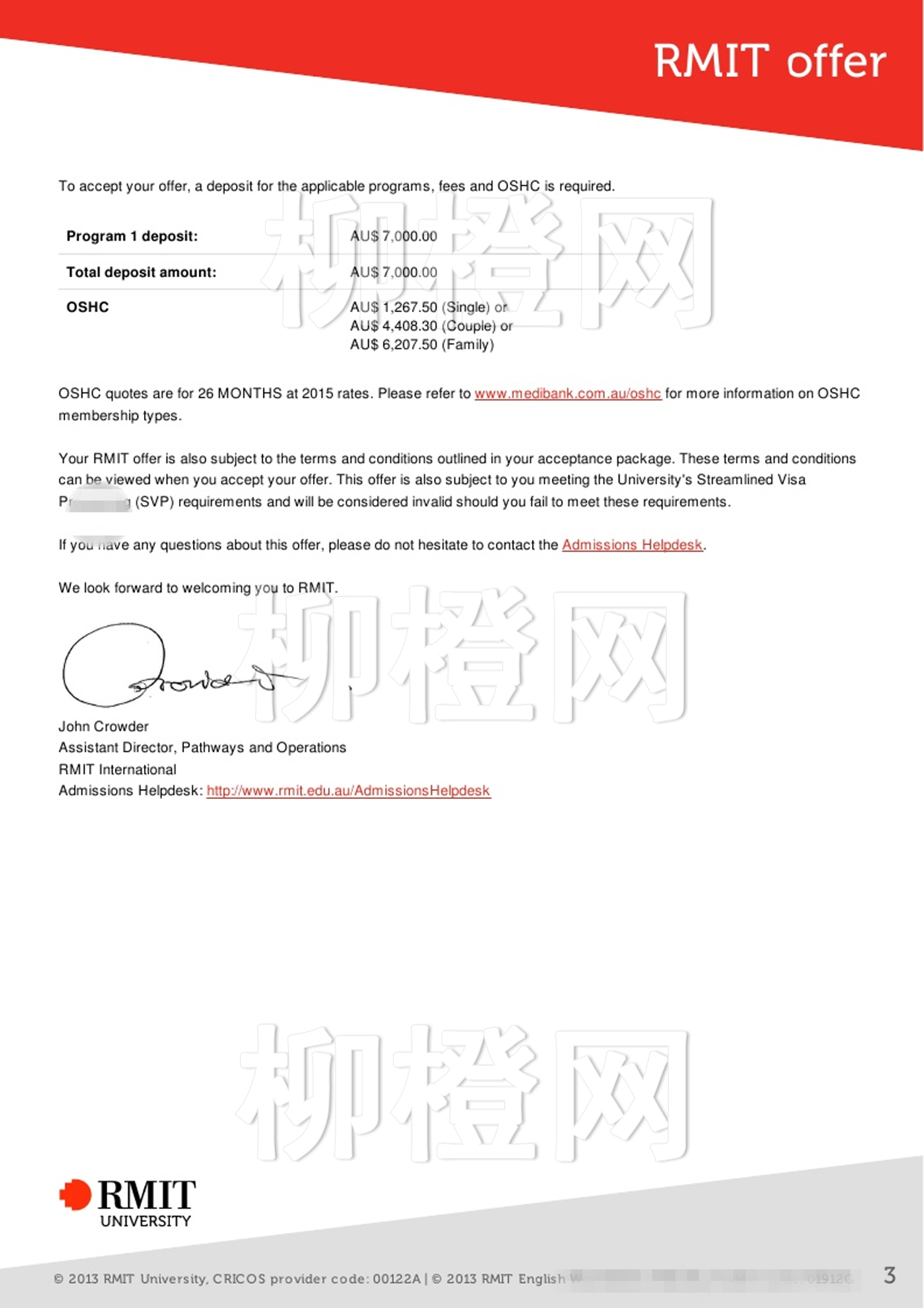 上海师范大学,绩点2.64,在柳橙网老师的专业指导下成功申请到了澳大利亚皇家墨尔本理工学院
