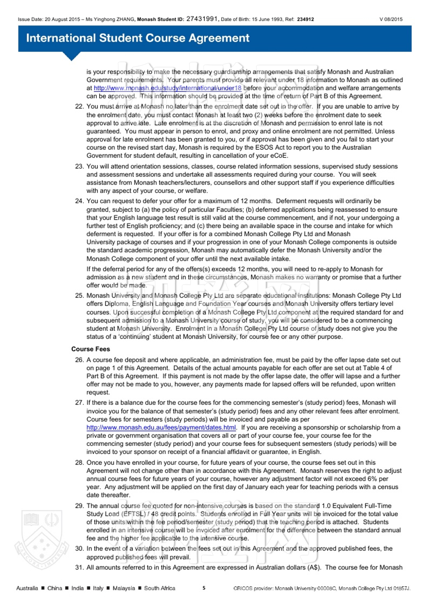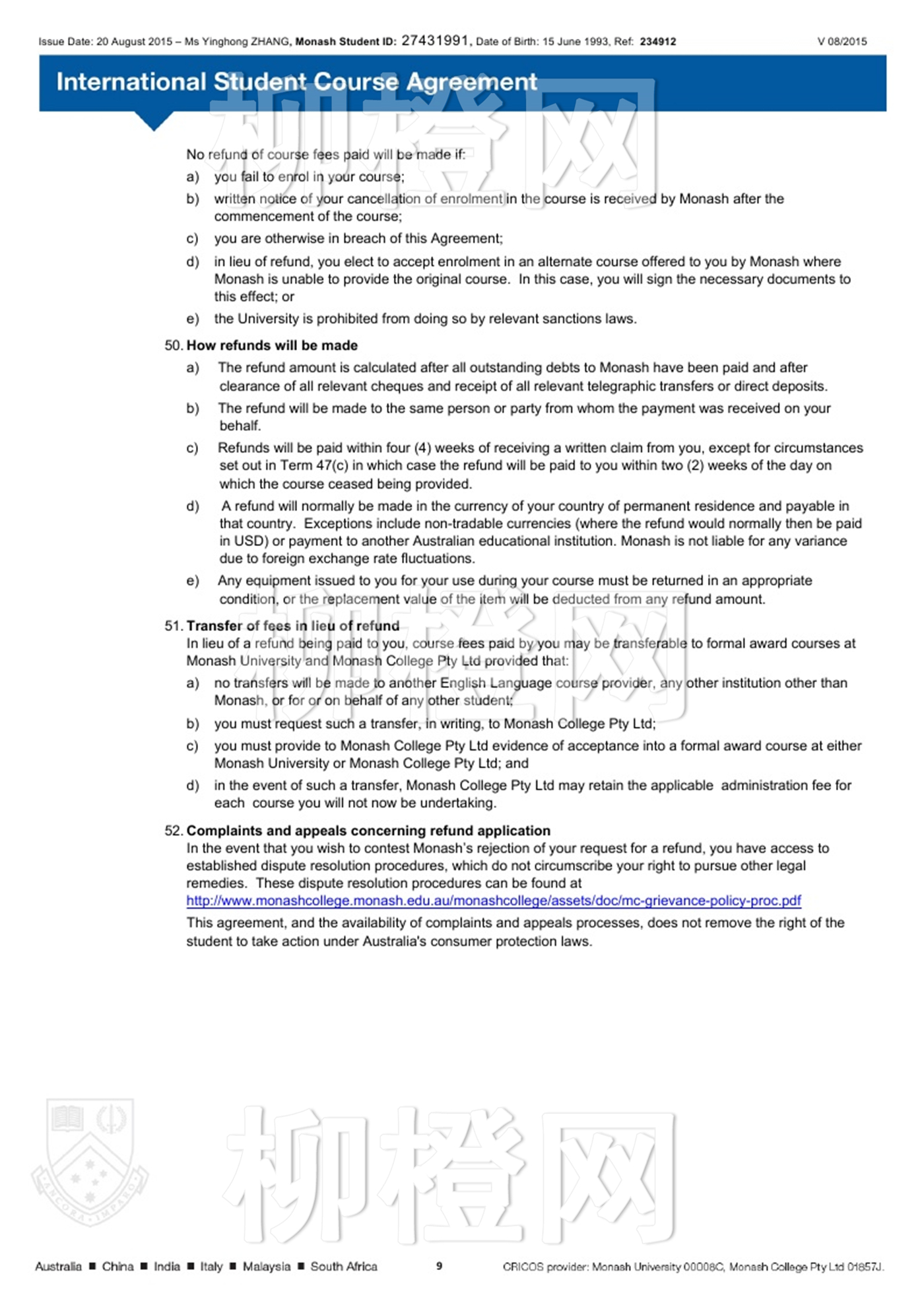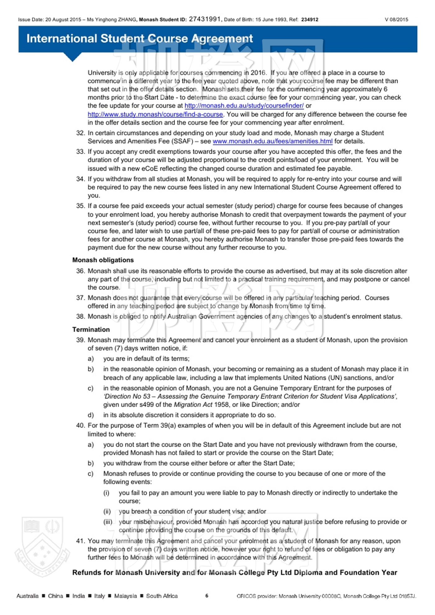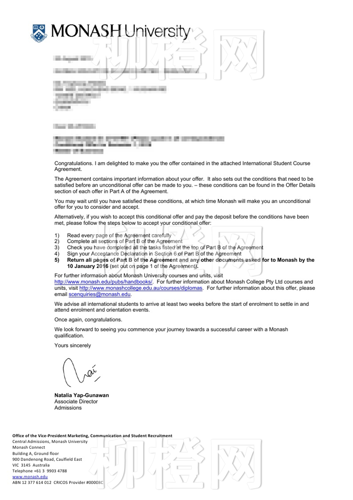 西安美术学院,均分82,在柳橙网老师的专业指导下申请到了澳洲八大之一的莫纳什大学学习商科