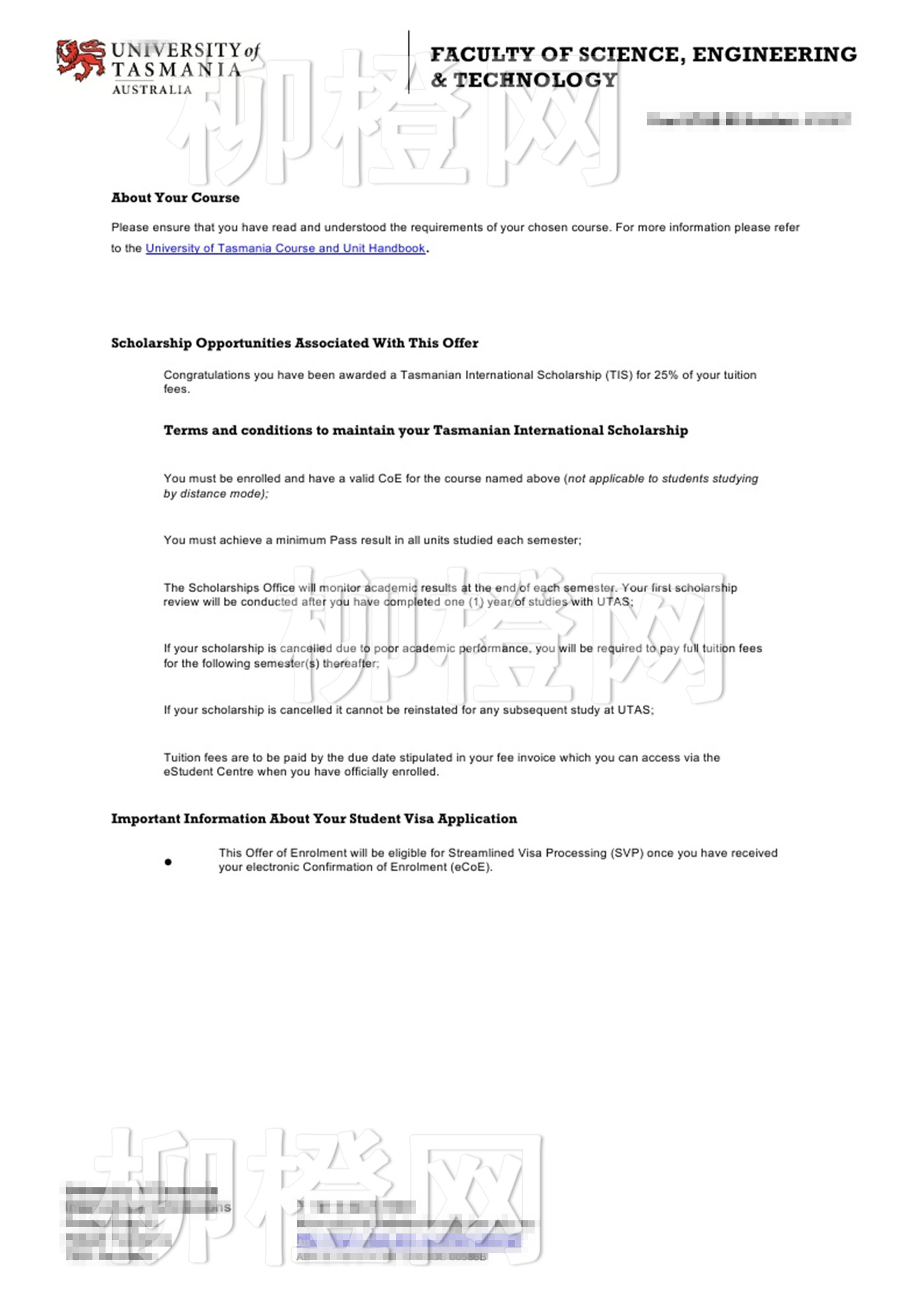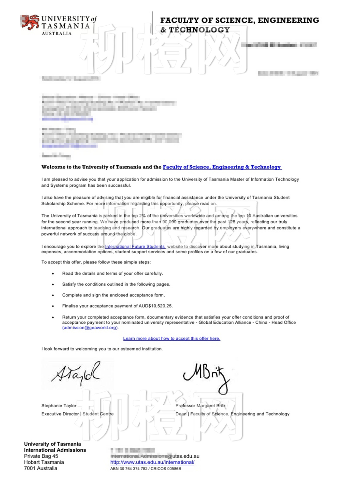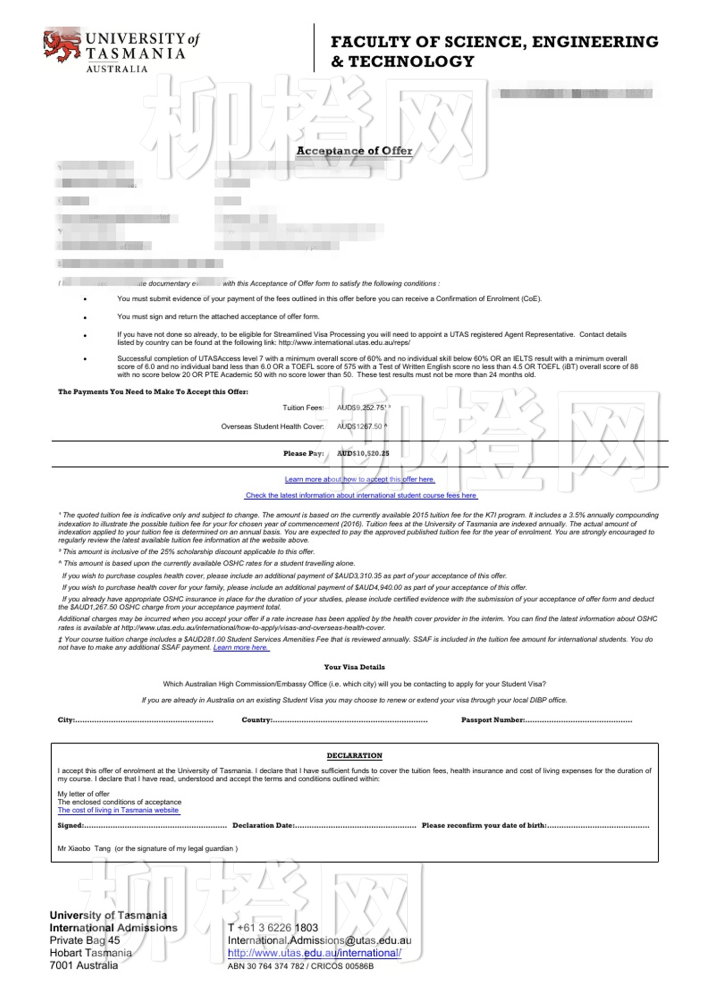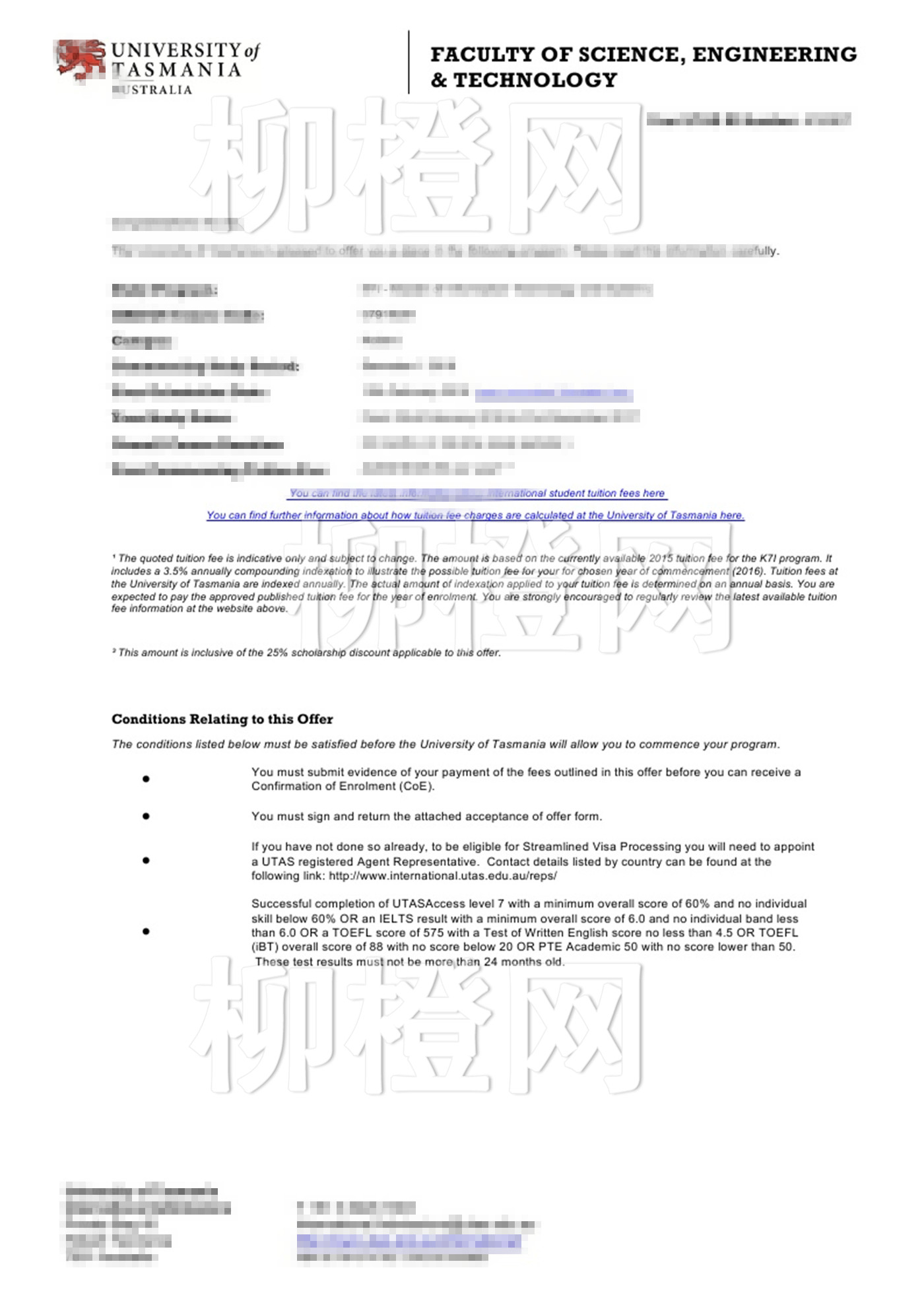 学生211背景,均分83,在柳橙网老师的专业指导下成功跨专业申请到了塔斯马尼亚大学的软件工程专业