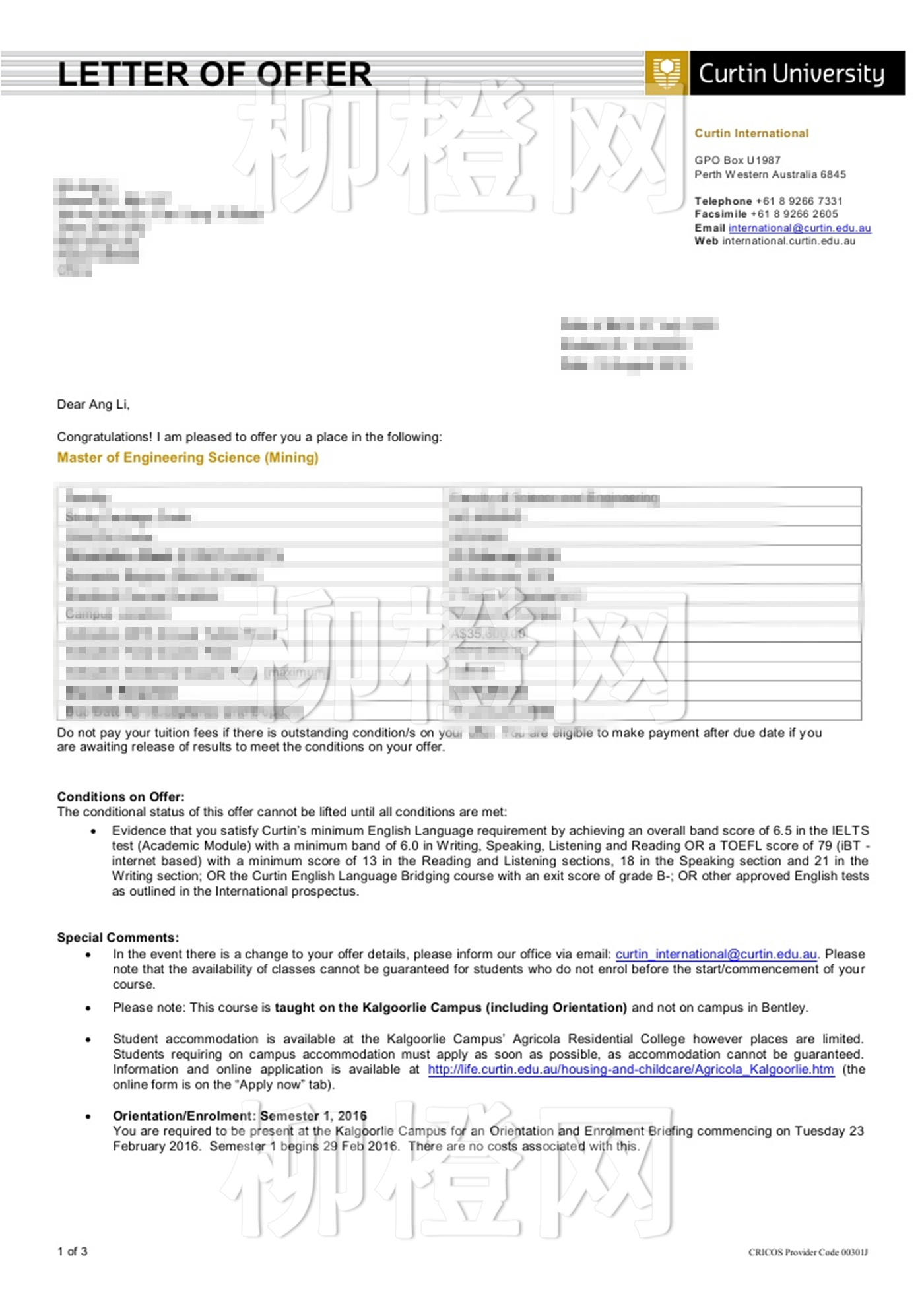 李同学是国内的985211院校,均分有72分,凭借突出的院校背景,在柳橙网的申请到了澳洲工科很强的科廷大学
