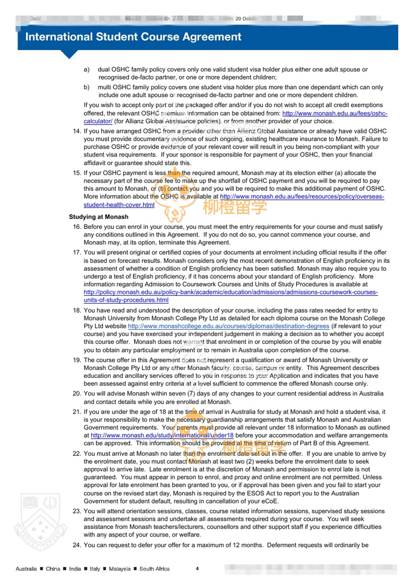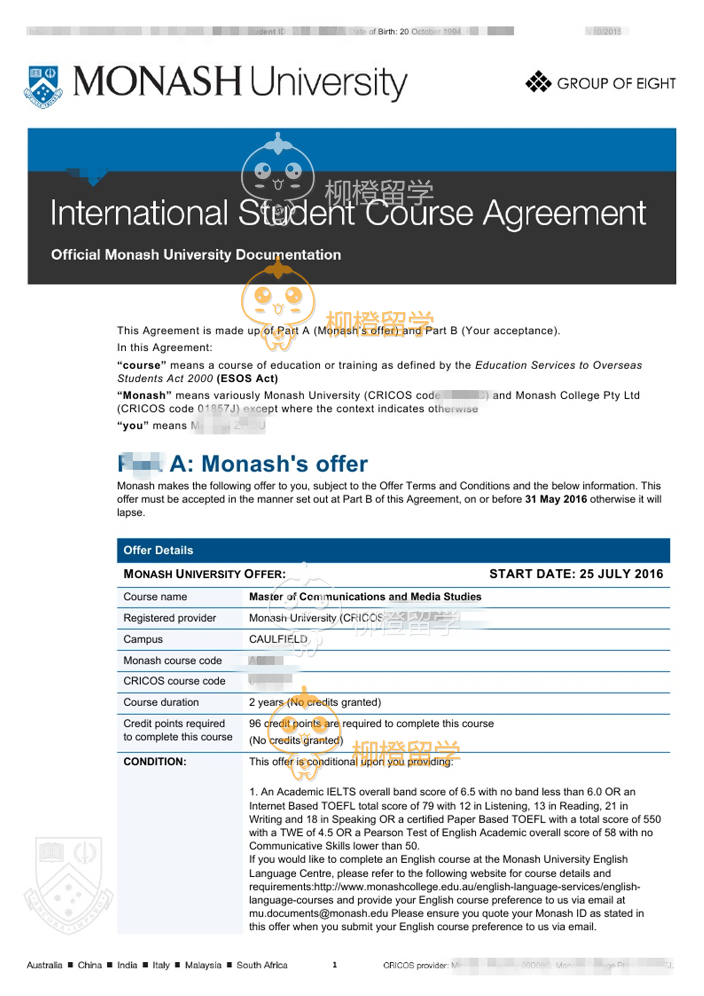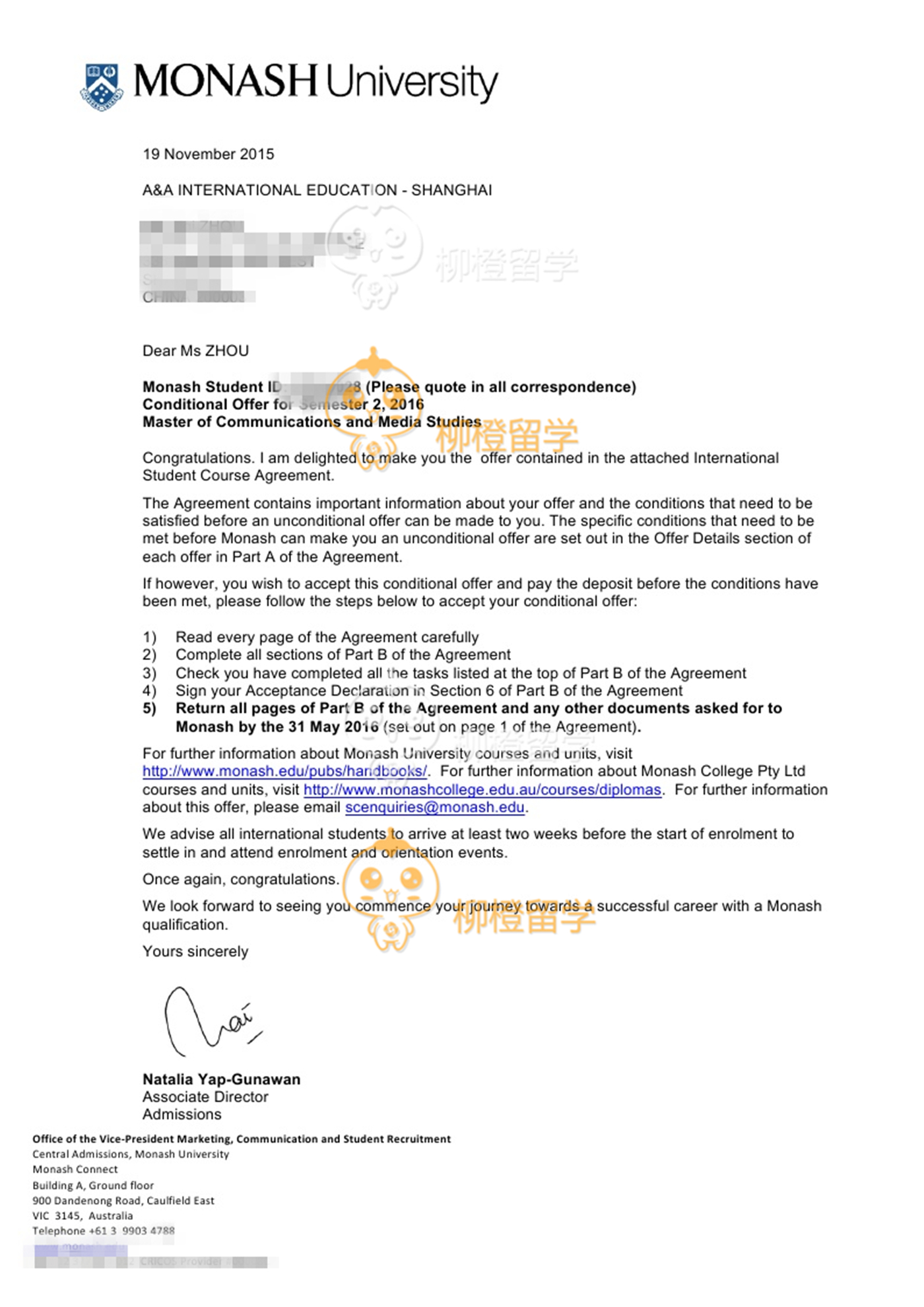 周同学湖南科技大学广告学专业,均分87.9,在柳橙网成功申请到澳洲莫纳什大学的Master of Communications and Media Studies