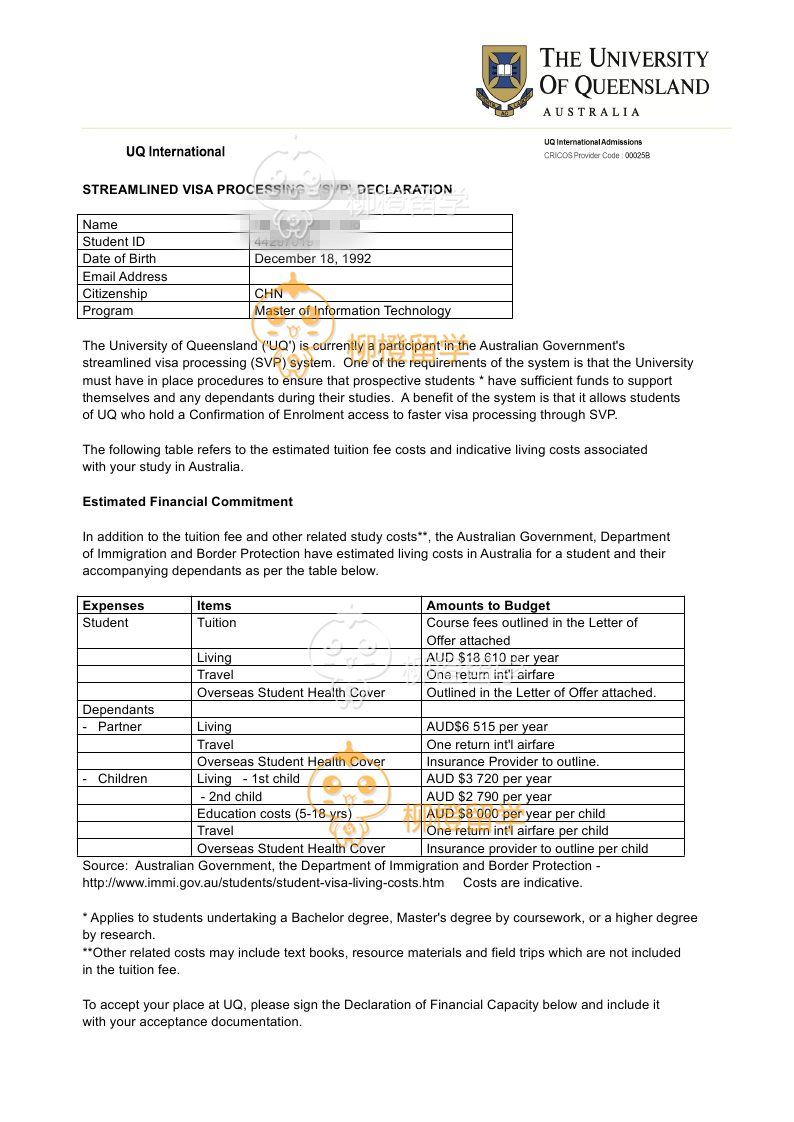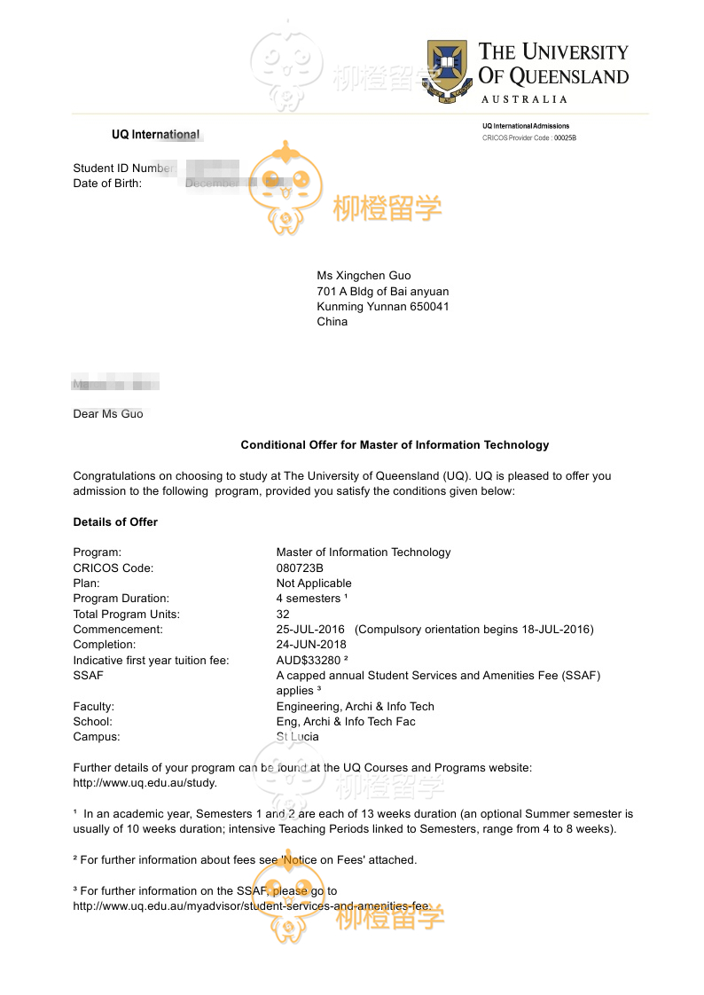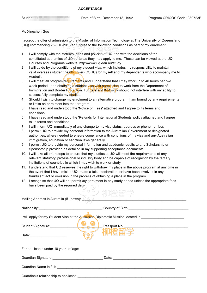 郭同学云南中医学院中药学,均分80,在柳橙网成功申请到澳大利亚昆士兰大学
