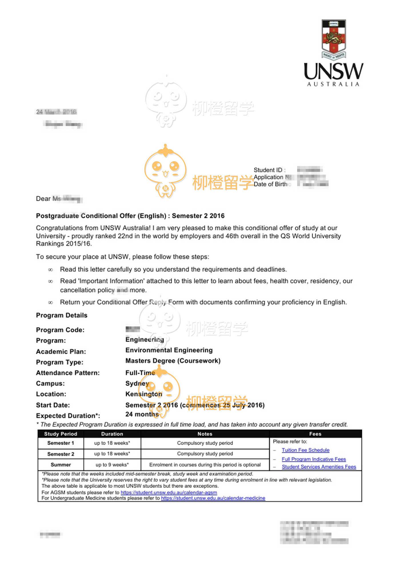 王同学北京信息科技大学机械制造专业,均分72,在柳橙网成功申请到澳洲新南威尔士大学的机械工程 环境工程