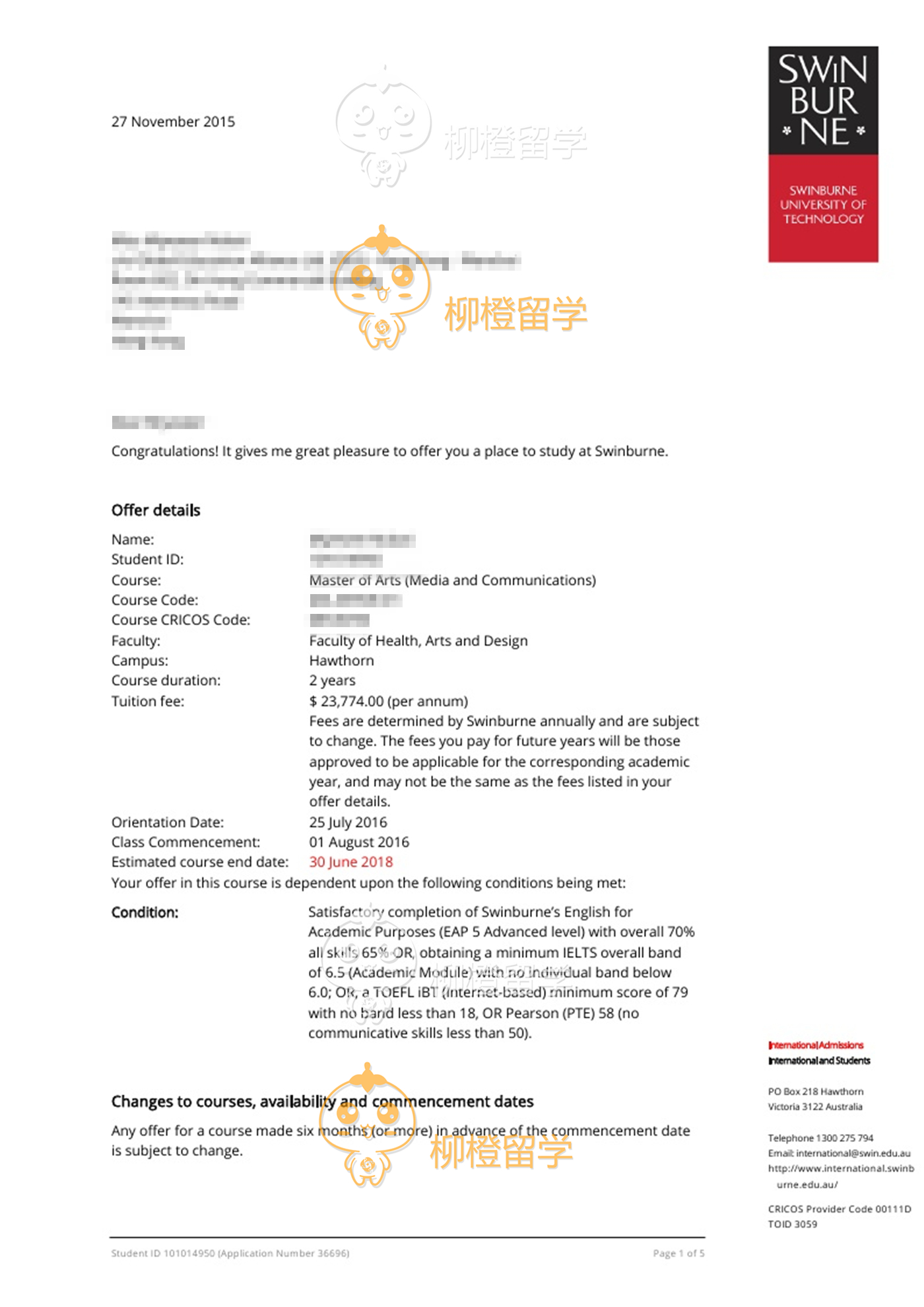 学生背景比较复杂并且学术背景不理想,在和柳橙网老师沟通之后,顺利拿到澳洲学校的录取通知书。