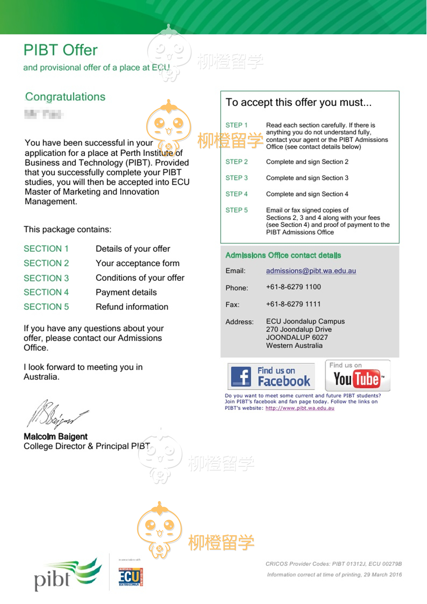 学生国内学术背景不理想,在和柳橙网老师长期沟通之后顺利获得澳洲大学录取,恭喜,也希望以后留学学业能够再接再厉。