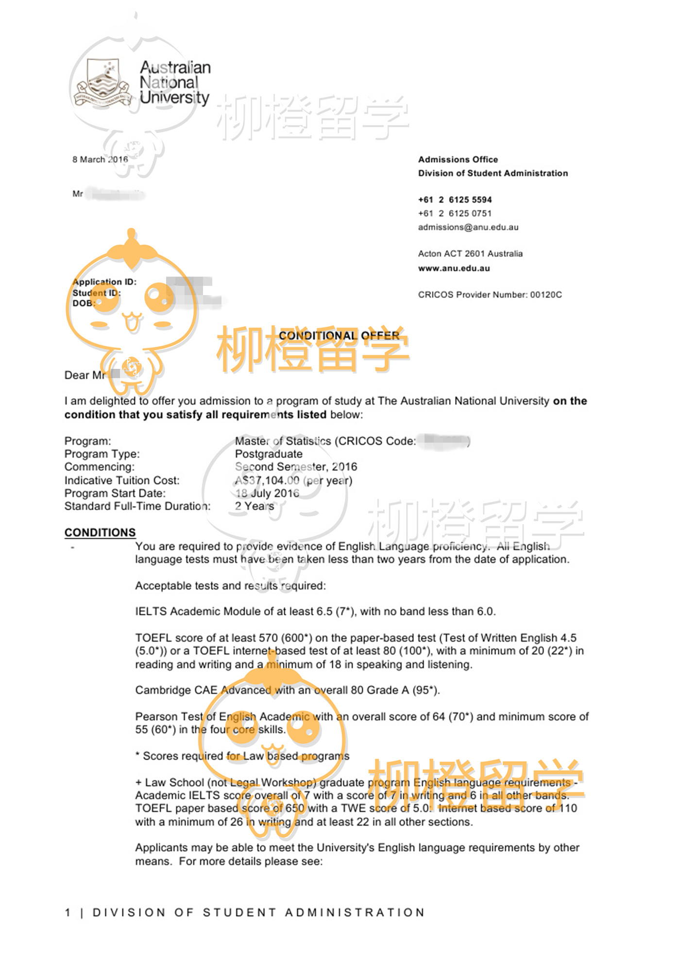 浙大 均分80不到 通过柳橙的帮助 和专业顾问的规划 申请到了 澳洲排名TOP3的 国立大学
