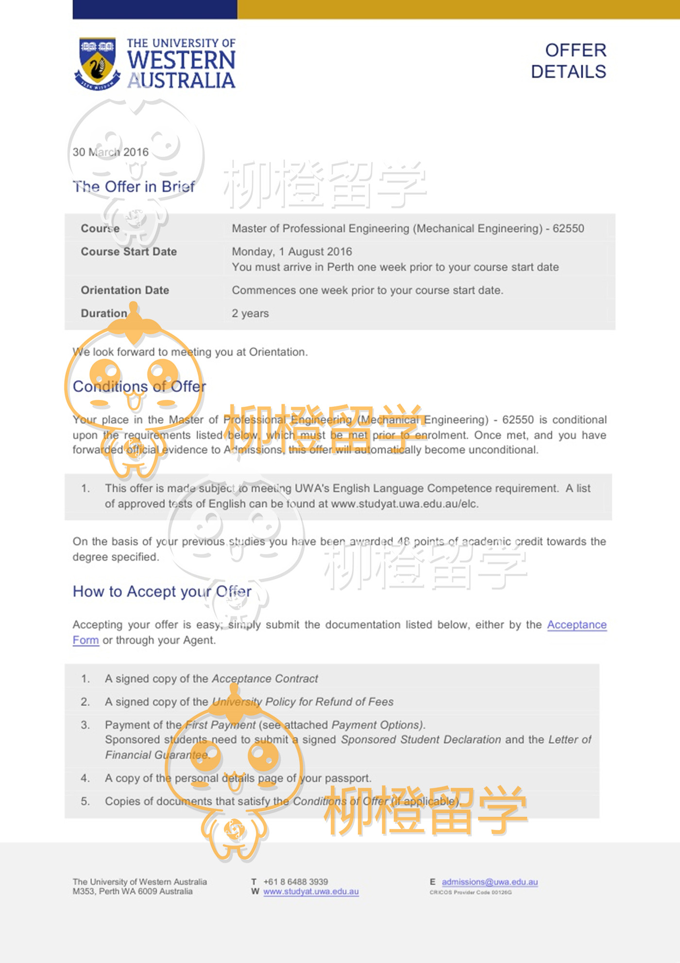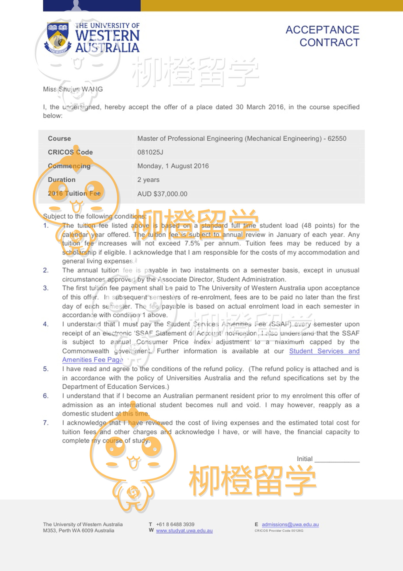 王同学北京信息科技大学机械制造专业,均分72,在柳橙网成功申请到澳洲西澳大利亚大学ster of Professional Engineering-Mechanical Engineering