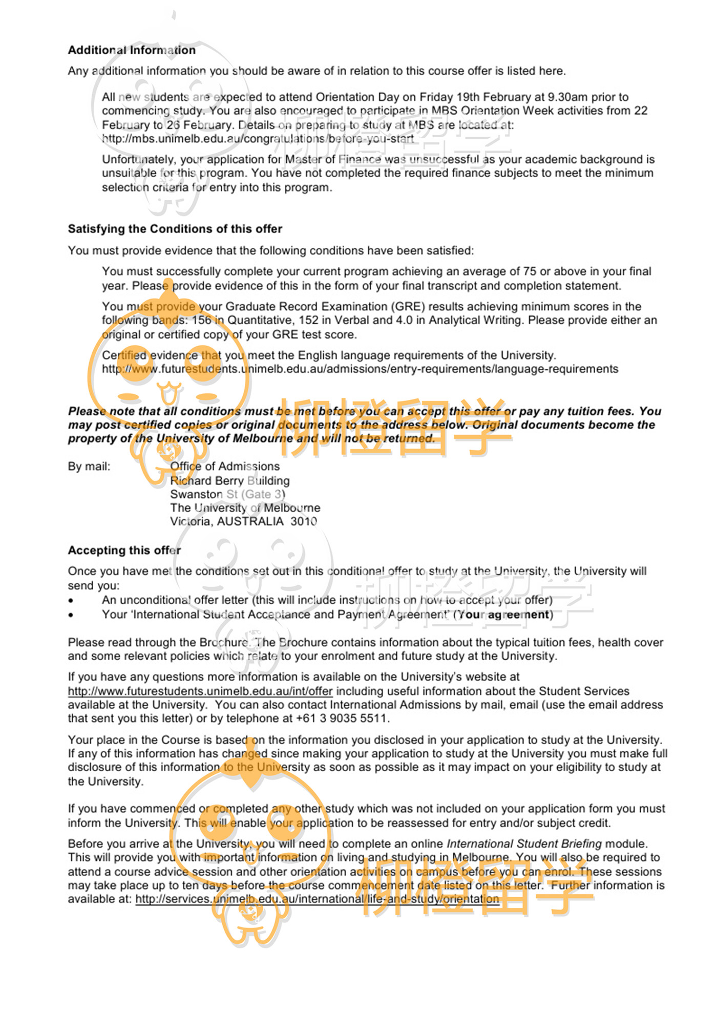 贾同学西安交通大学工商管理专业,均分85,在柳橙网成功申请到澳洲墨尔本大学Master of Finance